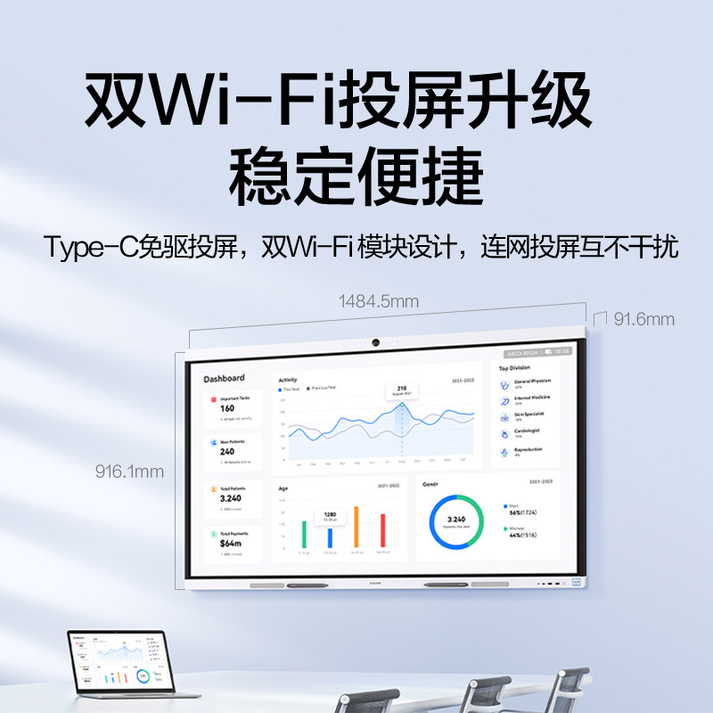 华为坤灵会议平板一体机IdeaHub B2 Base 65英寸智慧平板视频电子教学白板会议一体机触摸显示屏
