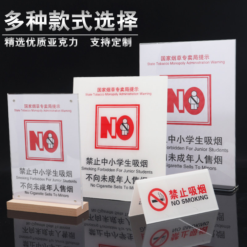 亚克力标牌禁止中小学生吸烟不向未成年人售烟温馨提示贴卫生间牌