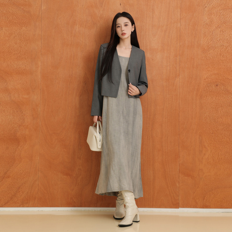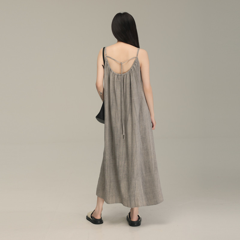 AIRIQI秋季新款宽松复古休闲晕染设计感亚麻吊带连衣裙AY43LQ305