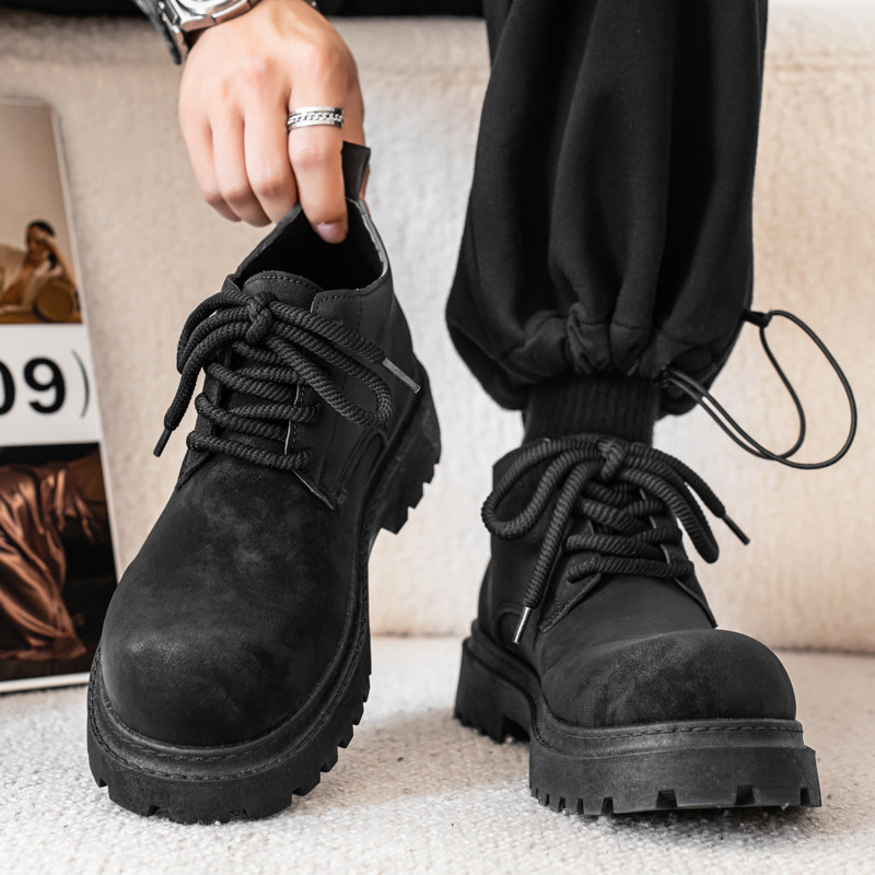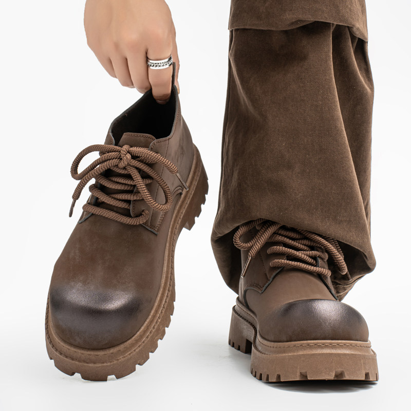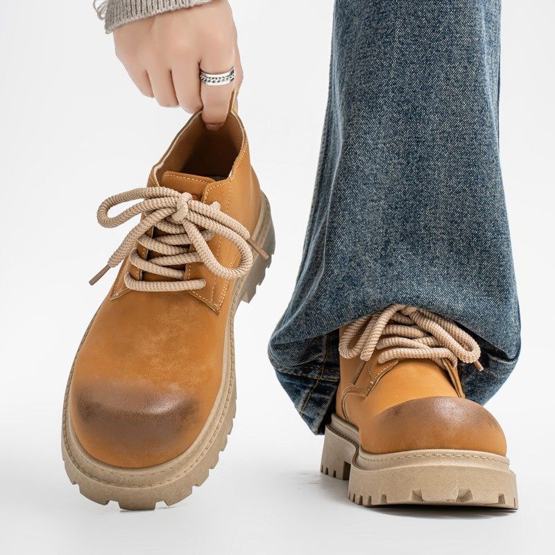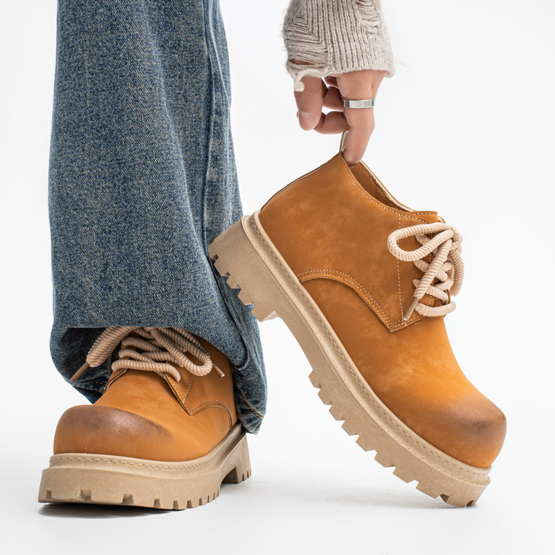 男鞋秋季美式复古做旧休闲工装大黄马丁靴男士低帮大头德比鞋