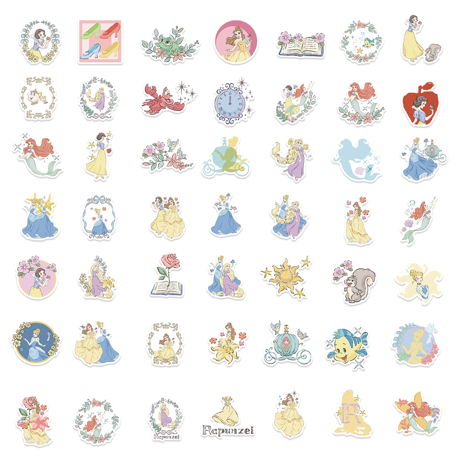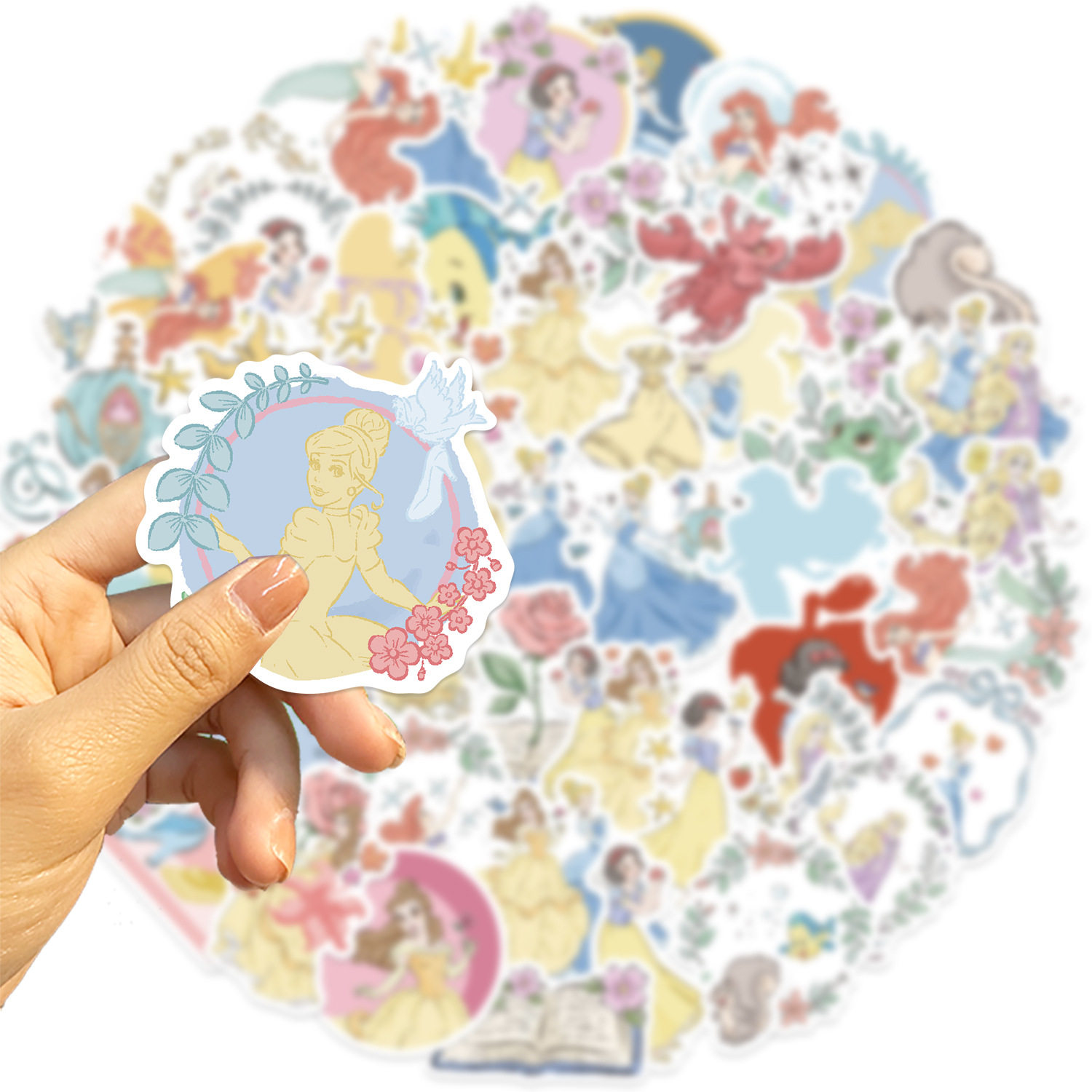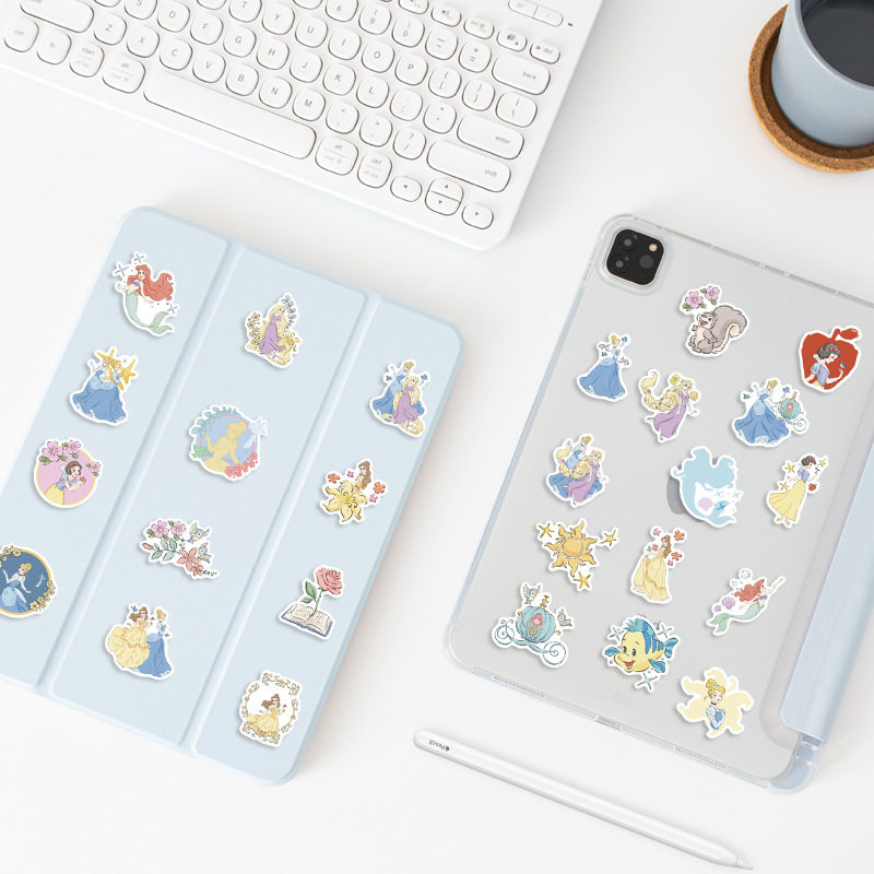 50张迪士尼正版卡通在逃公主涂鸦贴纸儿童女孩笔记本电脑手机壳平板吉他手账文具装饰行李箱防水diy贴画ins风