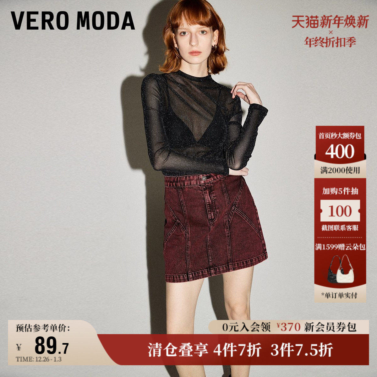 Vero Moda奥莱半身裙秋季新款复古时髦含棉A字高腰牛仔裙短裙流行