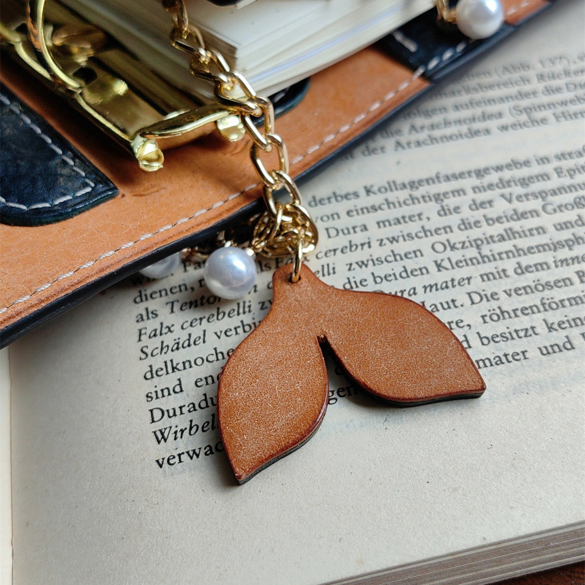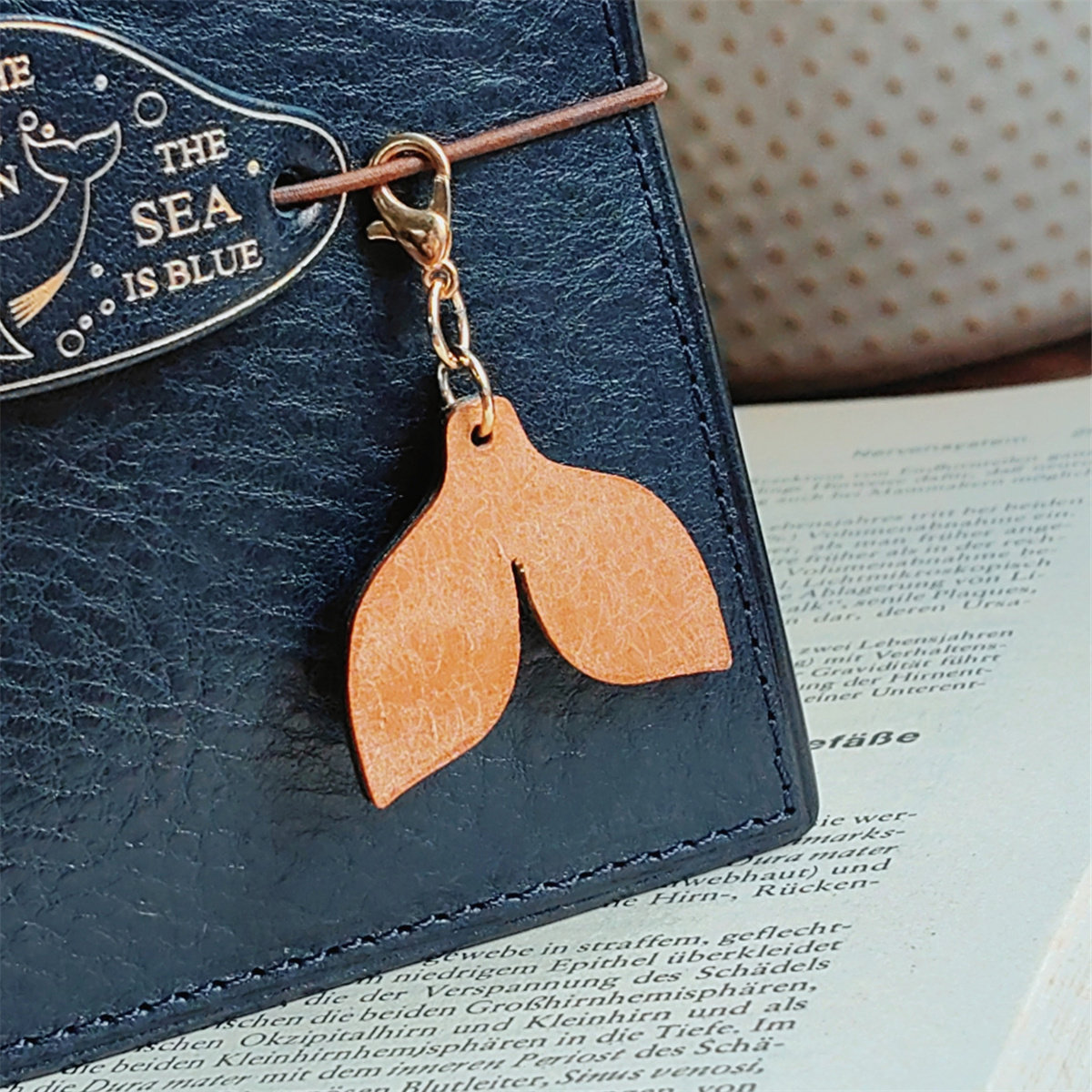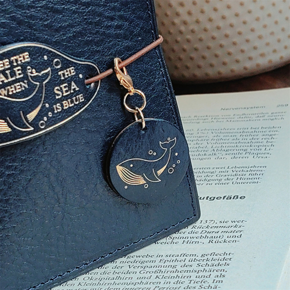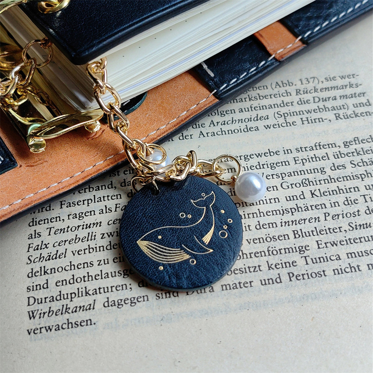 QY 真皮海深时见鲸鱼尾烫金鲸鱼手工手帐挂件装饰吊牌INS欧美活页