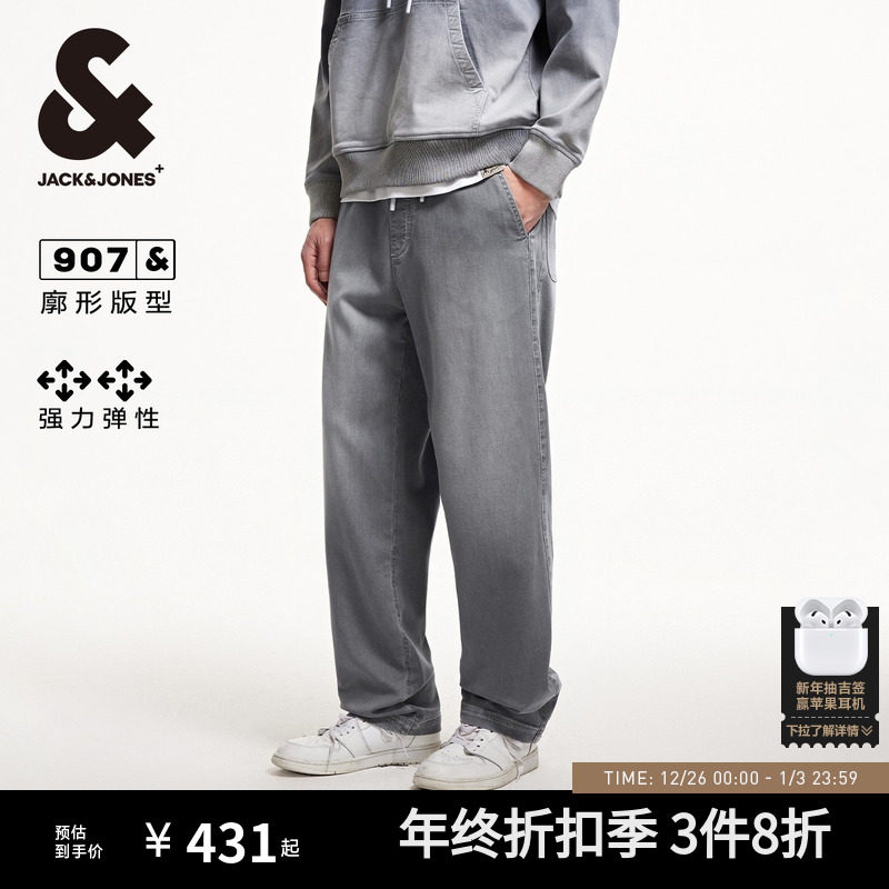 907杰克琼斯男装阔腿裤秋季裤子廓形松紧抽绳下装牛仔裤长裤男款