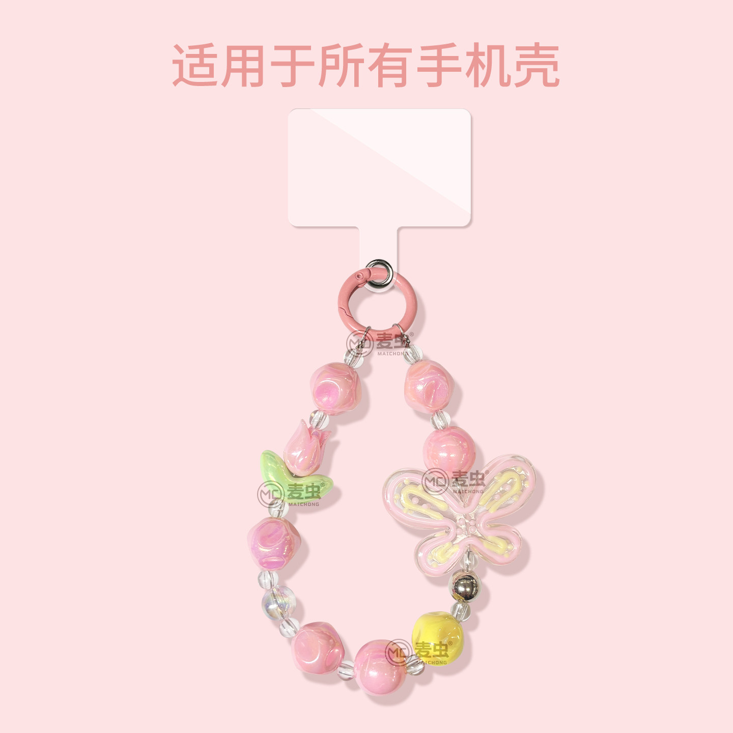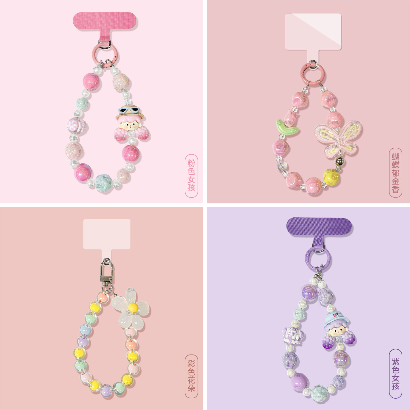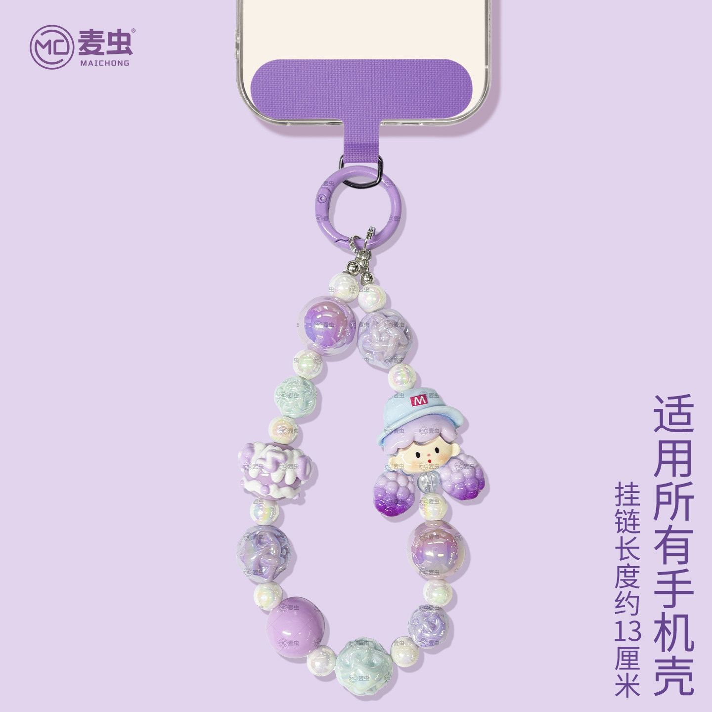 粉色女孩挂链手机链高端挂绳挂饰新高级短款适用苹果华为吊坠小红书同款清新紫色卡通串珠手机壳ccd相机配饰