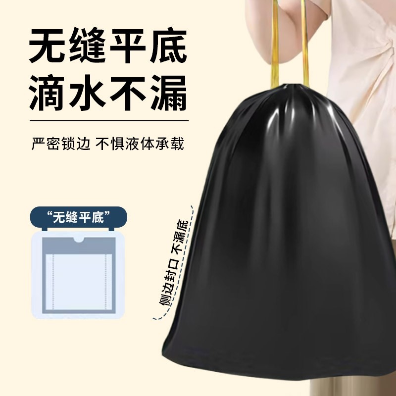 免撕抽绳垃圾袋家用宿舍特厚手提式大号厨房塑料袋办公室用清洁袋