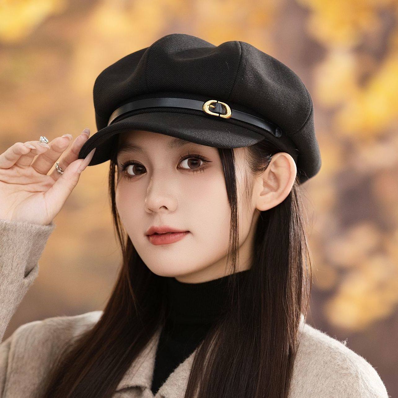 2025新款八角帽子女秋冬季加厚保暖贝雷帽时尚优雅复古鸭舌画家帽