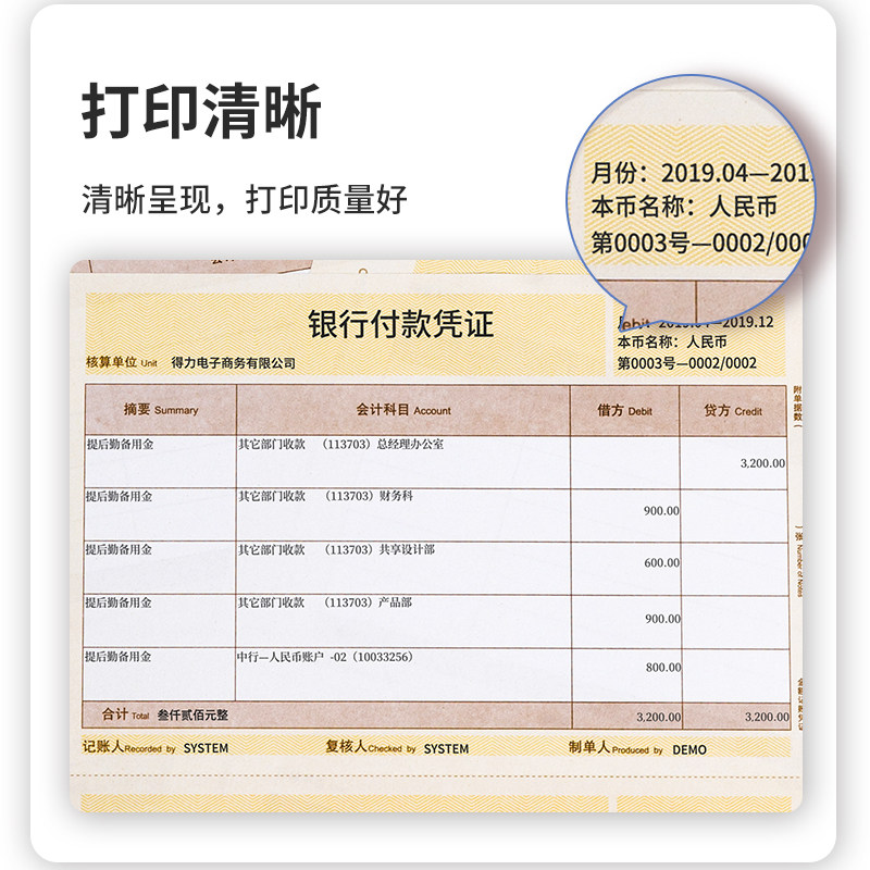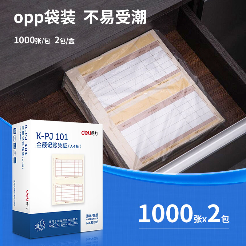 得力用友A4凭证纸打印纸会计记账凭证打印纸a4竖版金额记账凭证纸用友凭证打印纸KPJ105用友软件适用