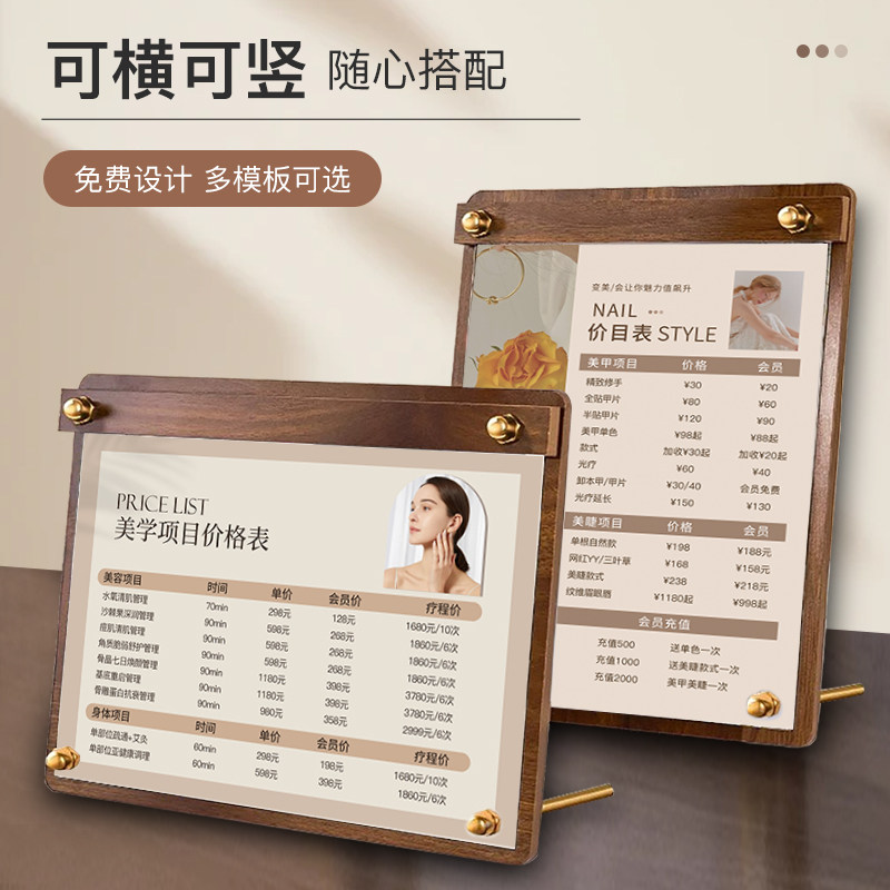 价格表设计美容院美甲美睫纹绣桌牌定制茶水养生美发店展示价目牌