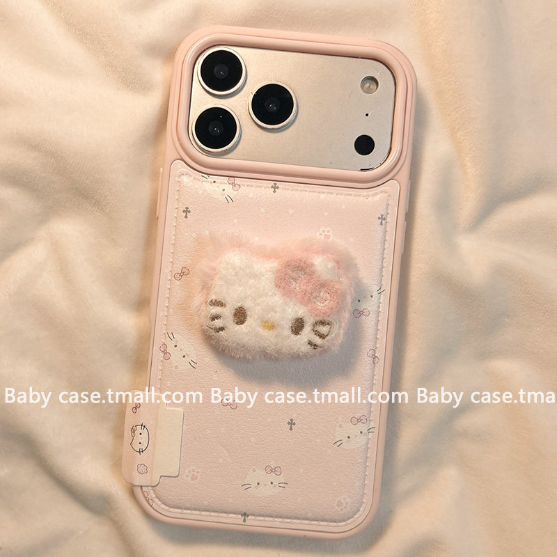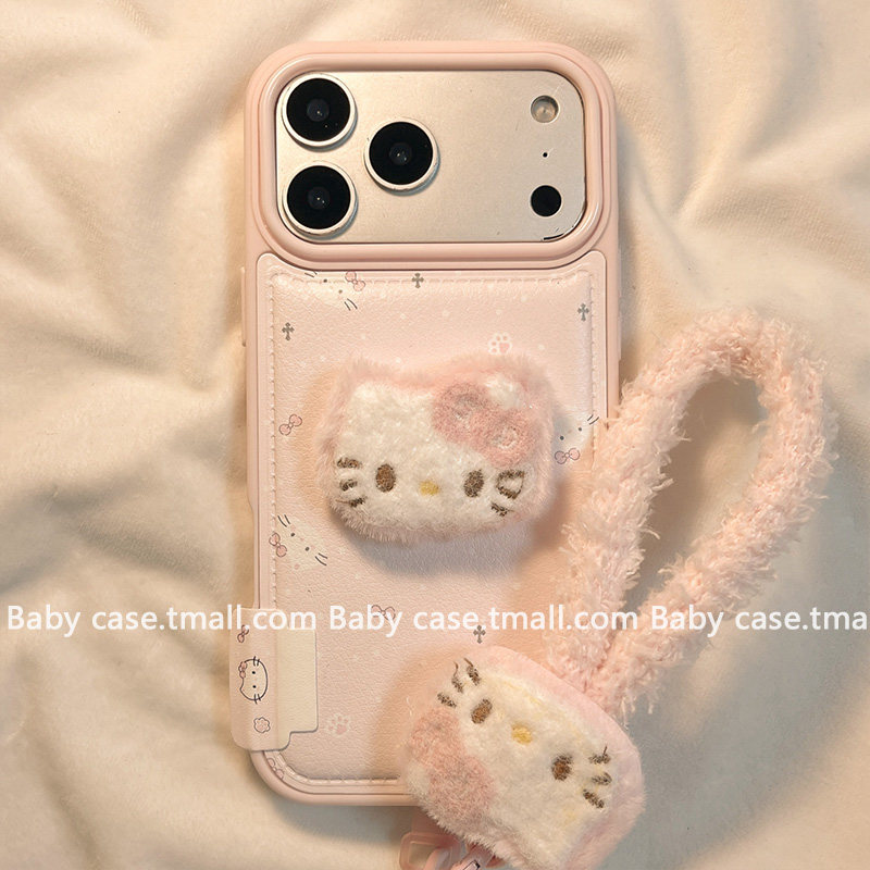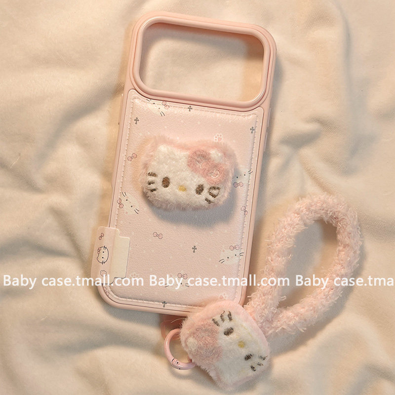 北比ins甜美粉色KT猫毛绒挂绳适用苹果17pro手机壳iphone16promax新款15卡通可爱17少女14pm日韩13皮质16全包