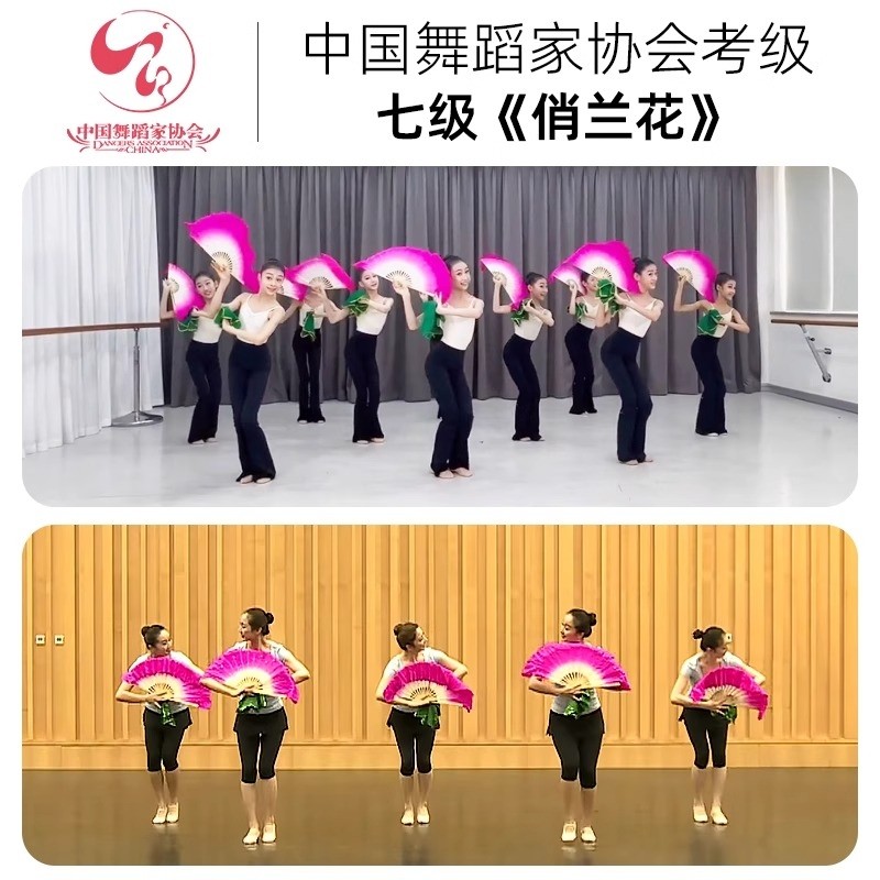 中国舞协考级七级俏兰花真丝舞蹈扇子茶山放歌鼓灯舞韵道具手绢