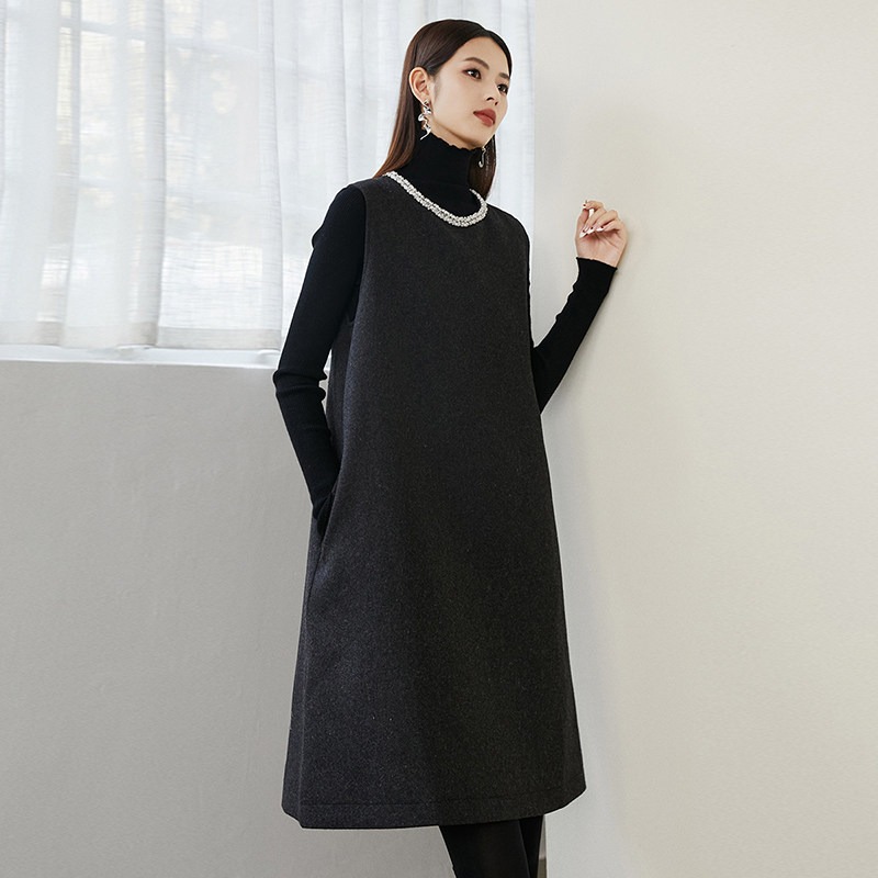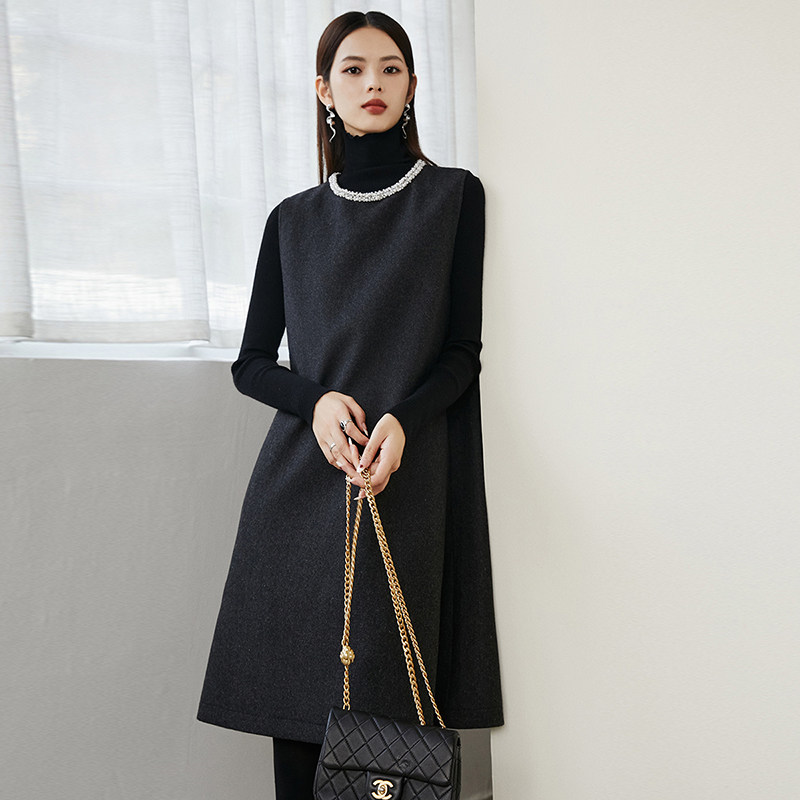 晚白2025年冬新款时尚裙子气质毛呢裙韩系羊毛呢小个子连衣裙女