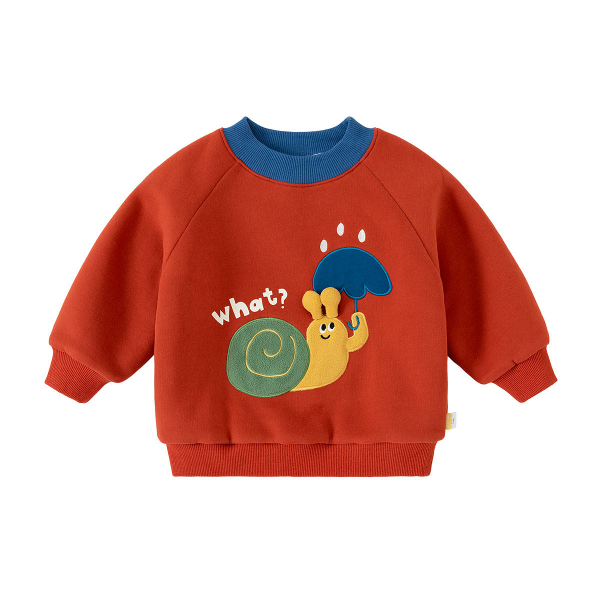 嘟嘟家男童卫衣红色宝宝上衣秋冬儿童衣服女童加绒一体绒加厚冬装