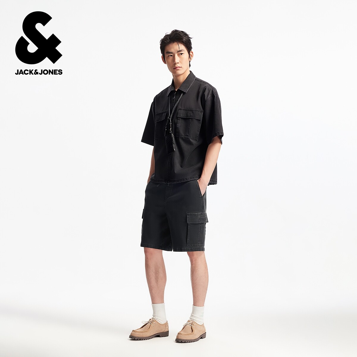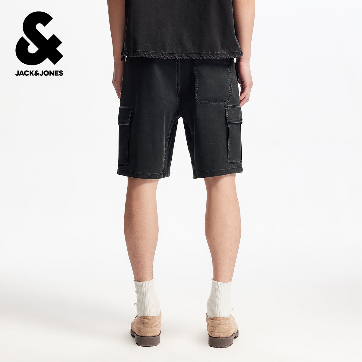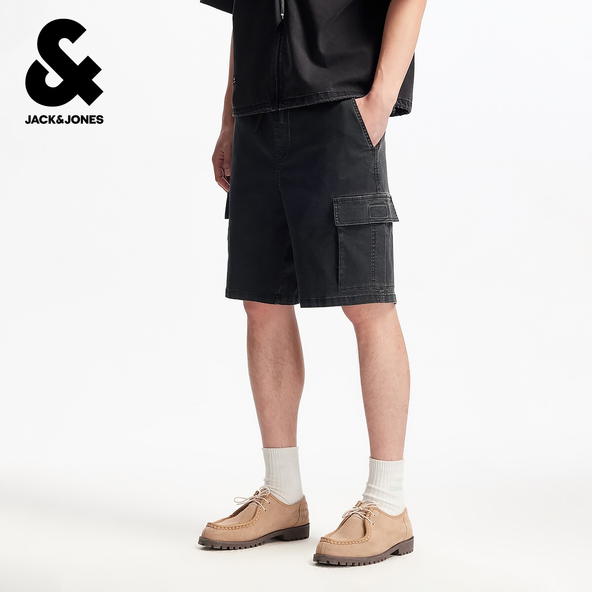 杰克琼斯男装春季新款时尚百搭潮纯色直筒休闲工装风牛仔短裤子