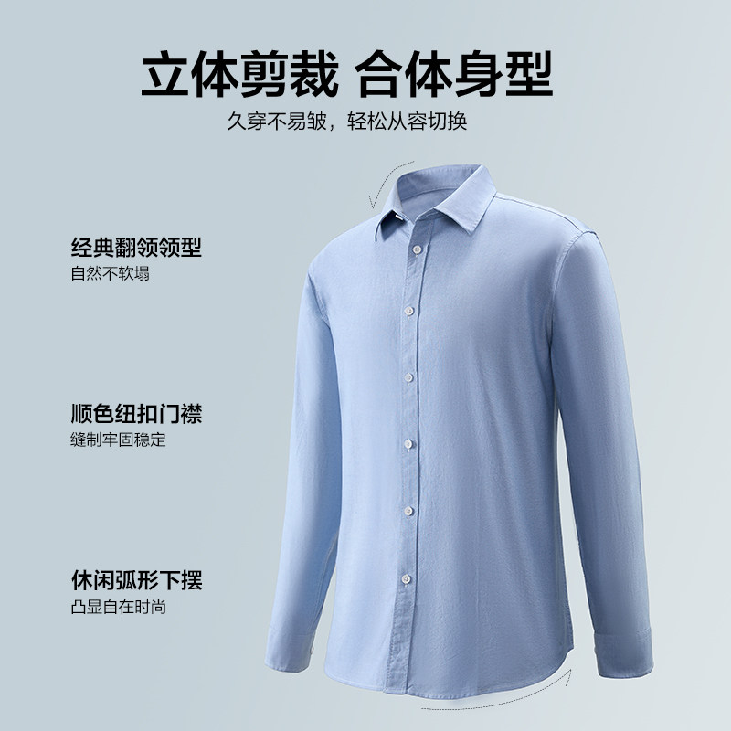 【清仓】杉杉品牌男士长袖衬衫纯色2025春季新款休闲免烫纯棉衬衣