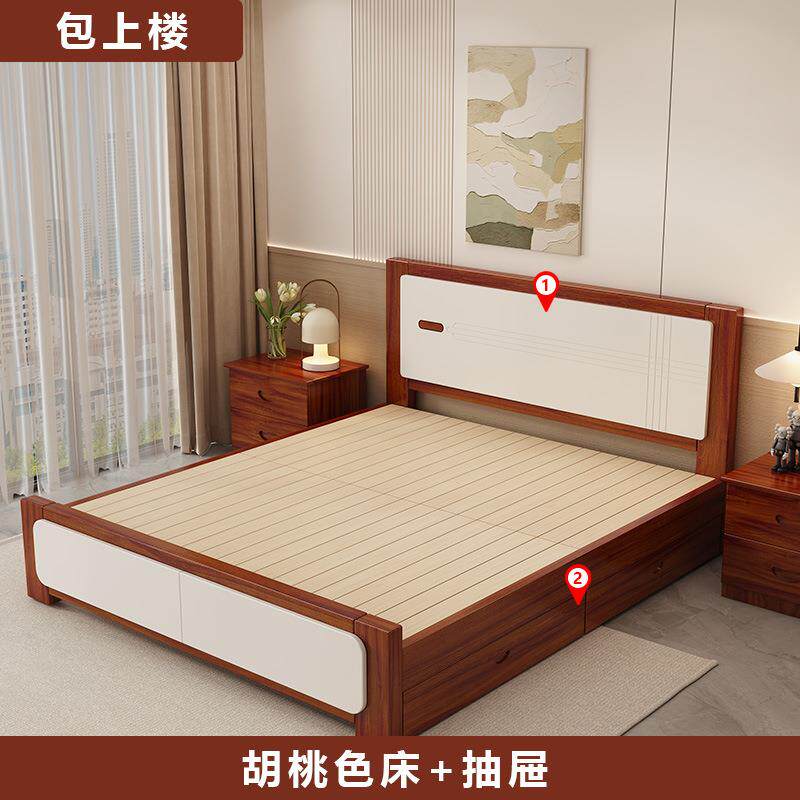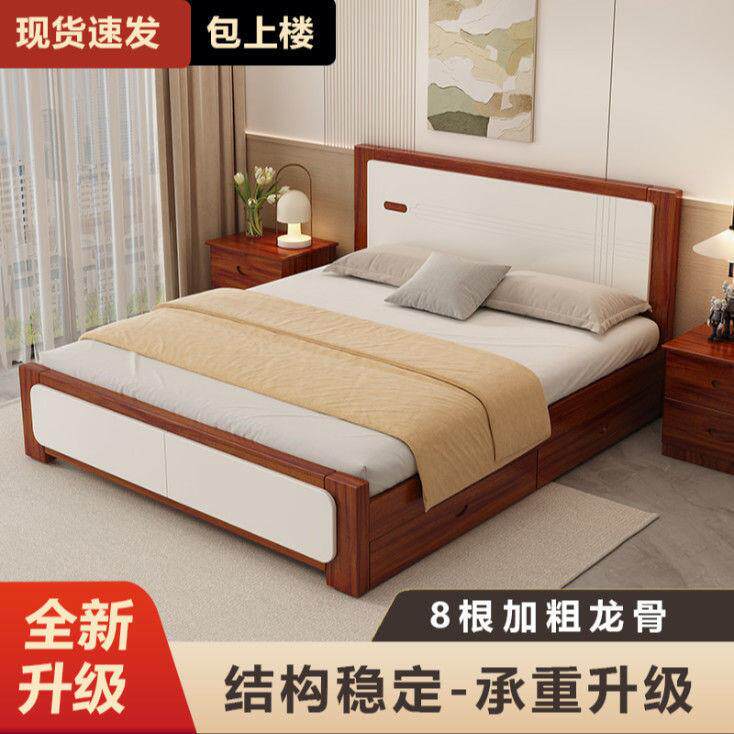 实木床现代简约1.8米双人床主卧家用经济型1.5米出租房单人床1.2m