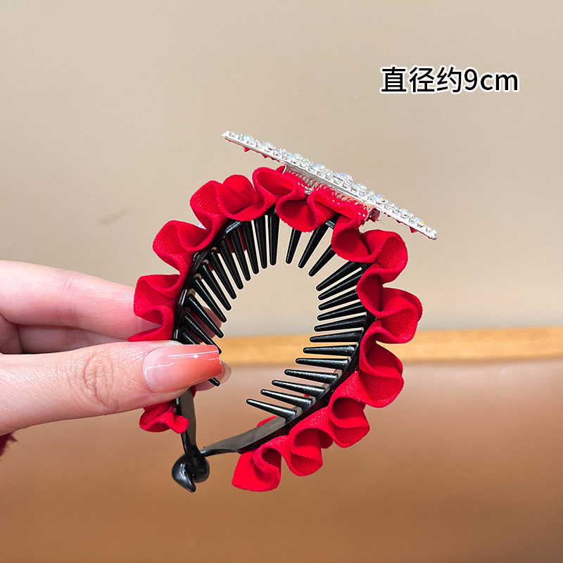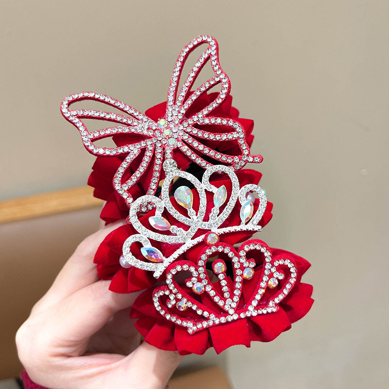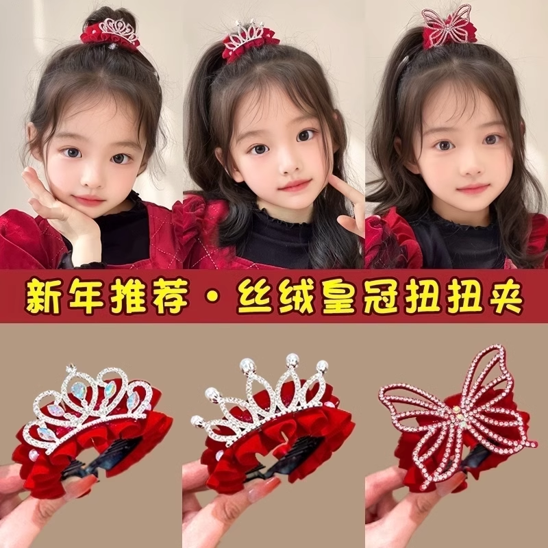 新年儿童头饰发饰皇冠发夹女童丸子头马尾扣发卡红色喜庆女孩过年