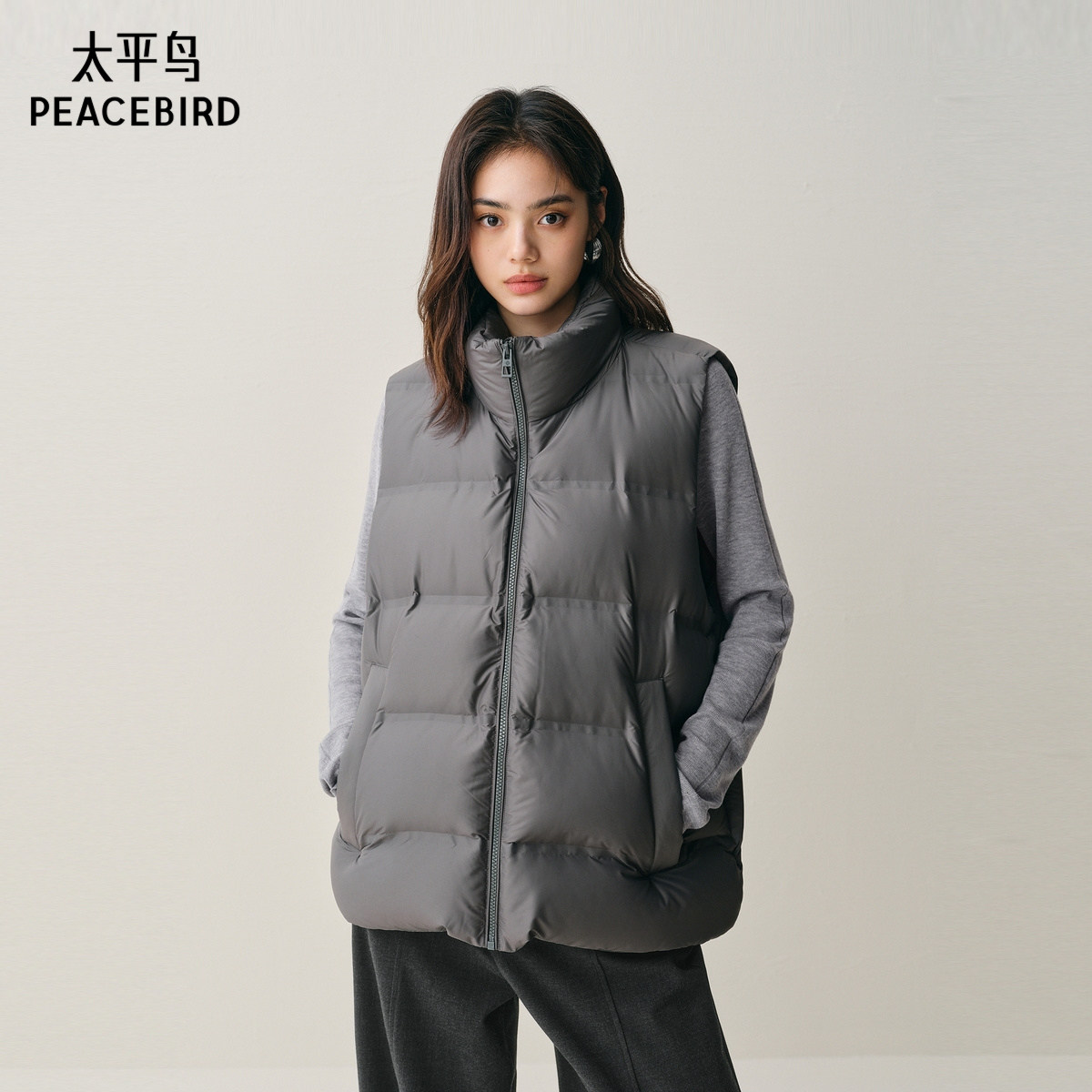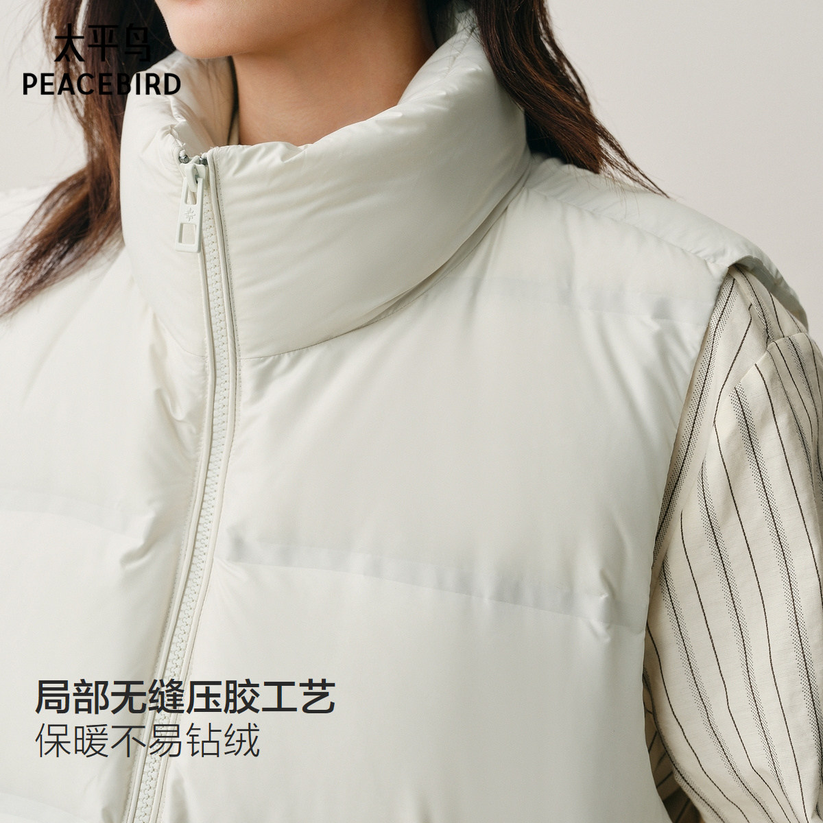【张婧仪同款】太平鸟商场压胶立领羽绒服女白鸭绒马甲A1ACF4124