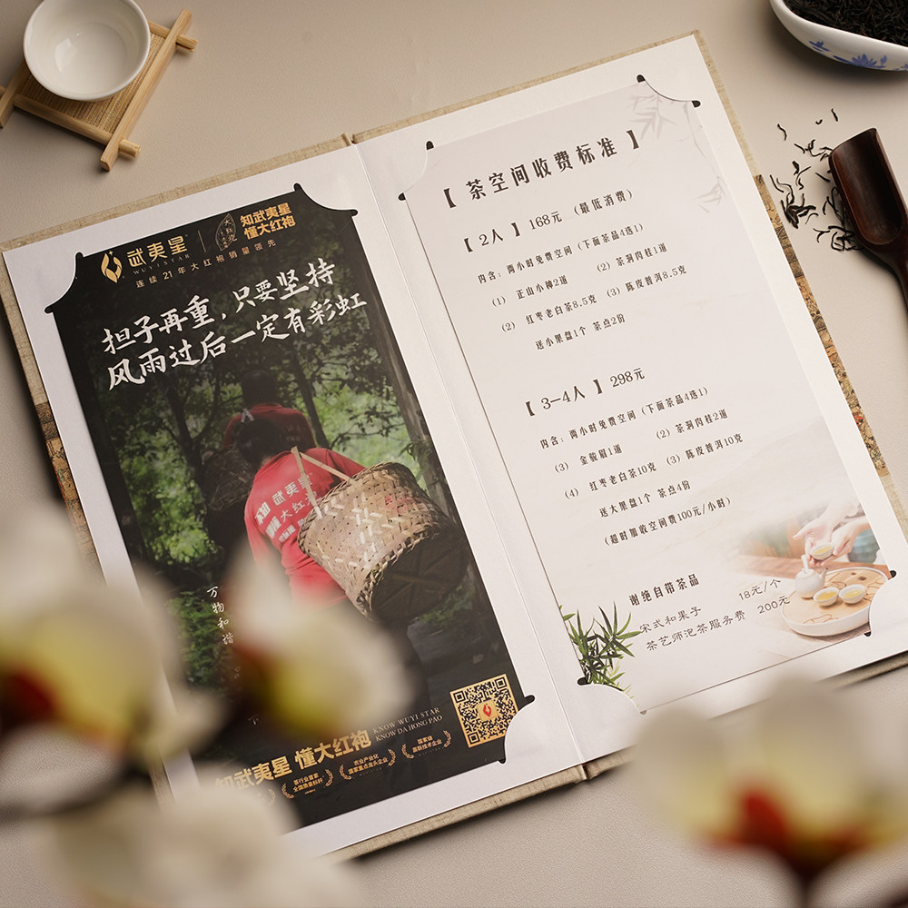 定制中式复古布面活页菜单可更换茶单酒单日料价目册茶单养身艾灸价格表适用茶楼馆和餐厅的菜谱设计制作