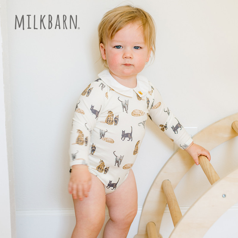 Milkbarn婴儿翻领长袖包屁衣宝宝哈衣爬服新生儿套头衣服秋季新品