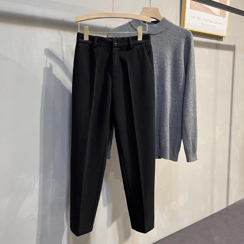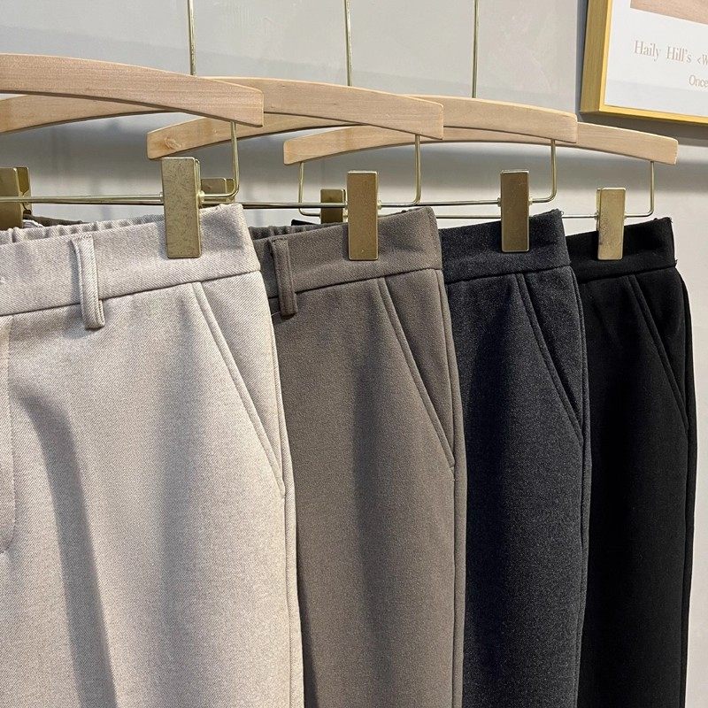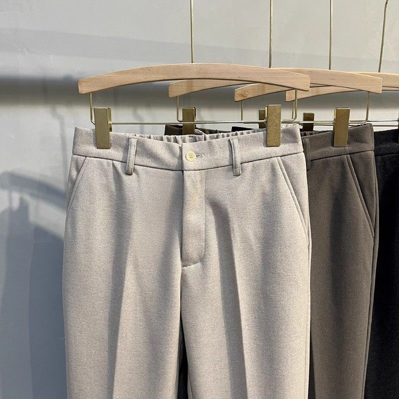 秋冬季毛呢西裤男磨毛加厚保暖九分休闲裤修身直筒半松紧腰高级感