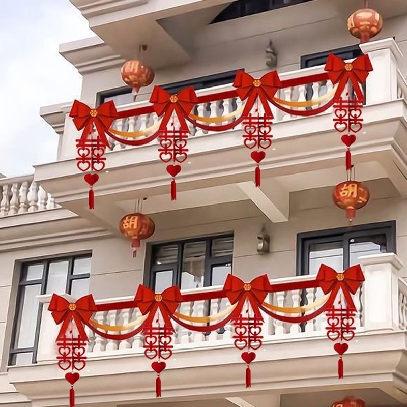 农村结婚阳台装饰婚礼用品院子楼梯栏杆拉花婚房布置套装扶手氛围