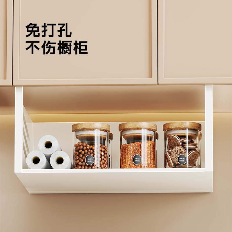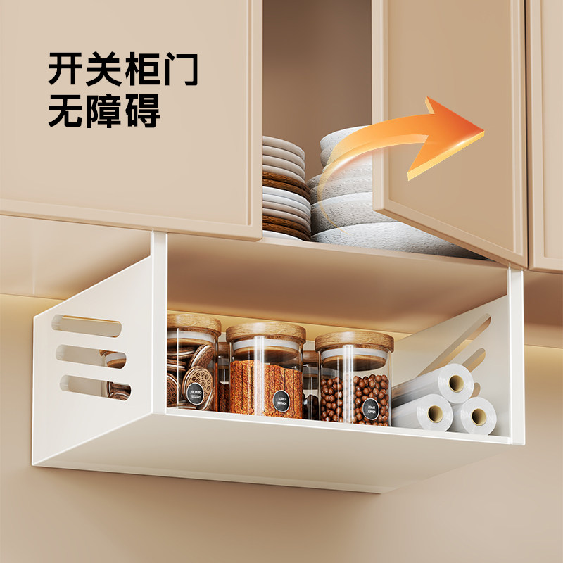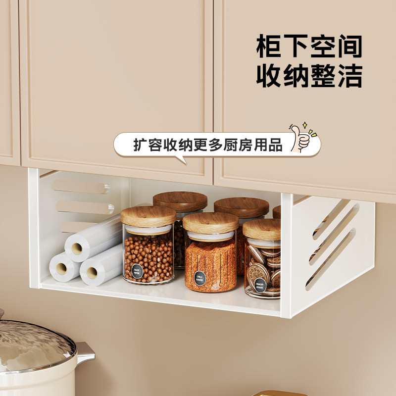 厨房吊柜门下置物架悬挂吊篮挂架分层储物架挂纸巾保鲜膜收纳架子