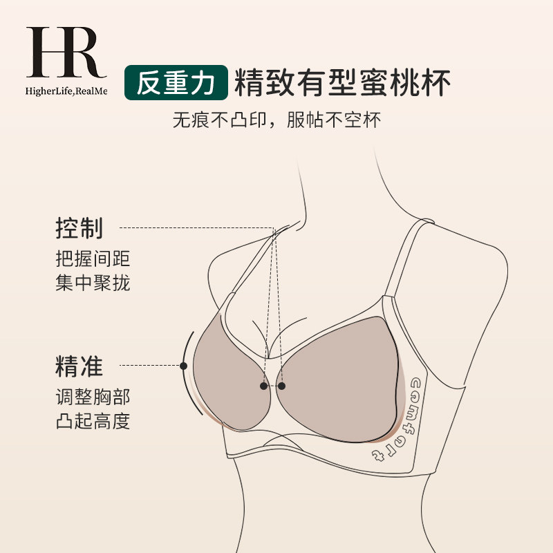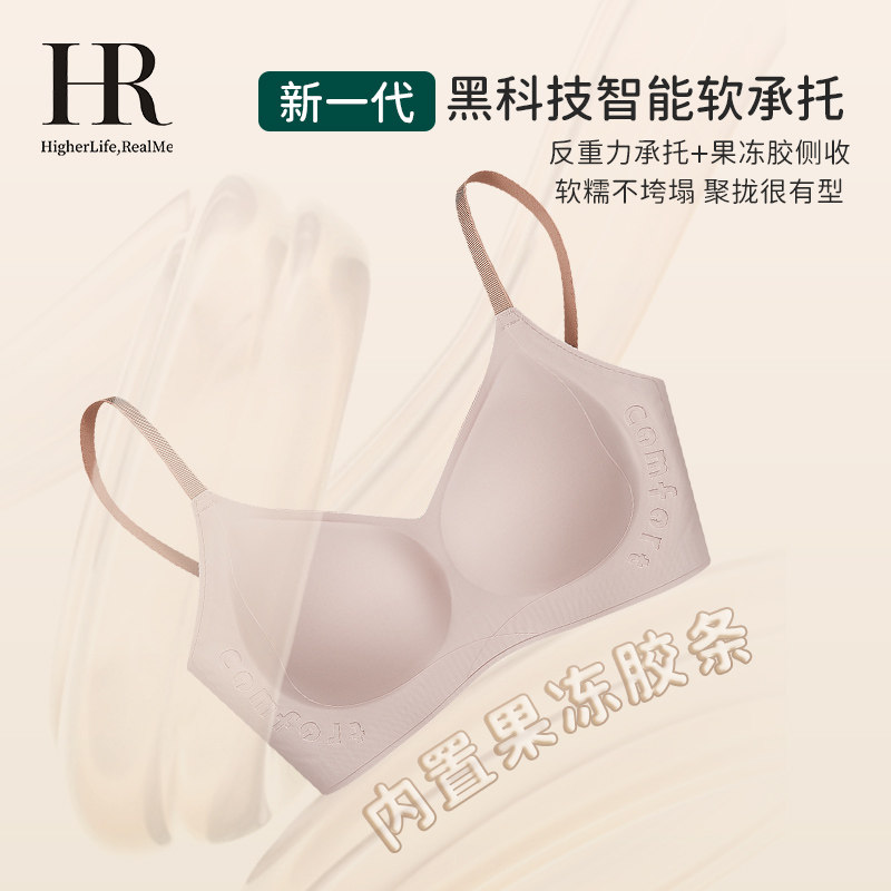 HR赫莲娜蜜桃杯小胸聚拢内衣女无钢圈防下垂收副乳果冻胶无痕文胸