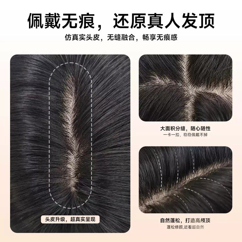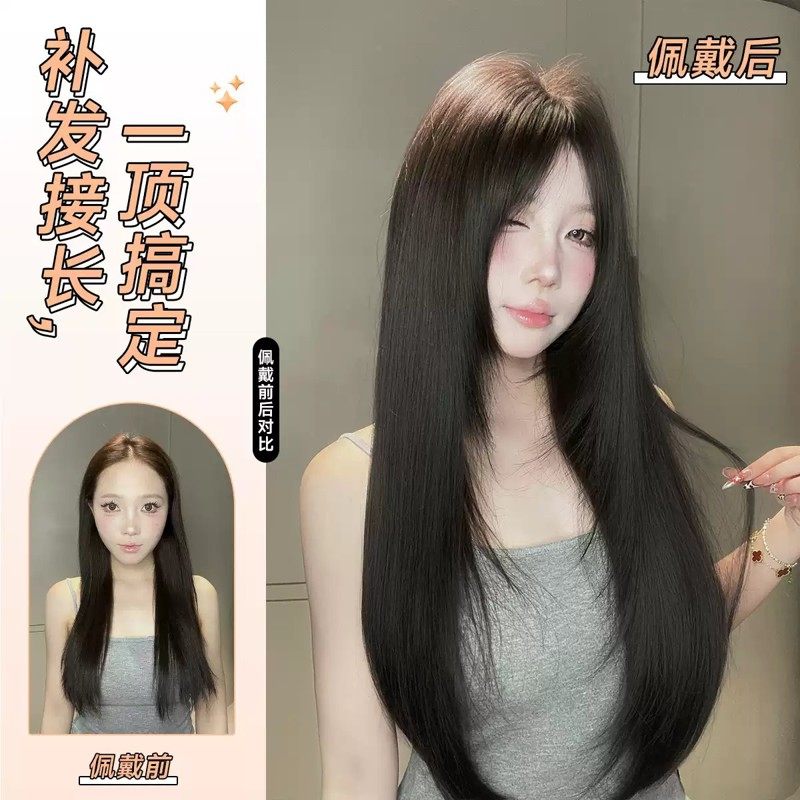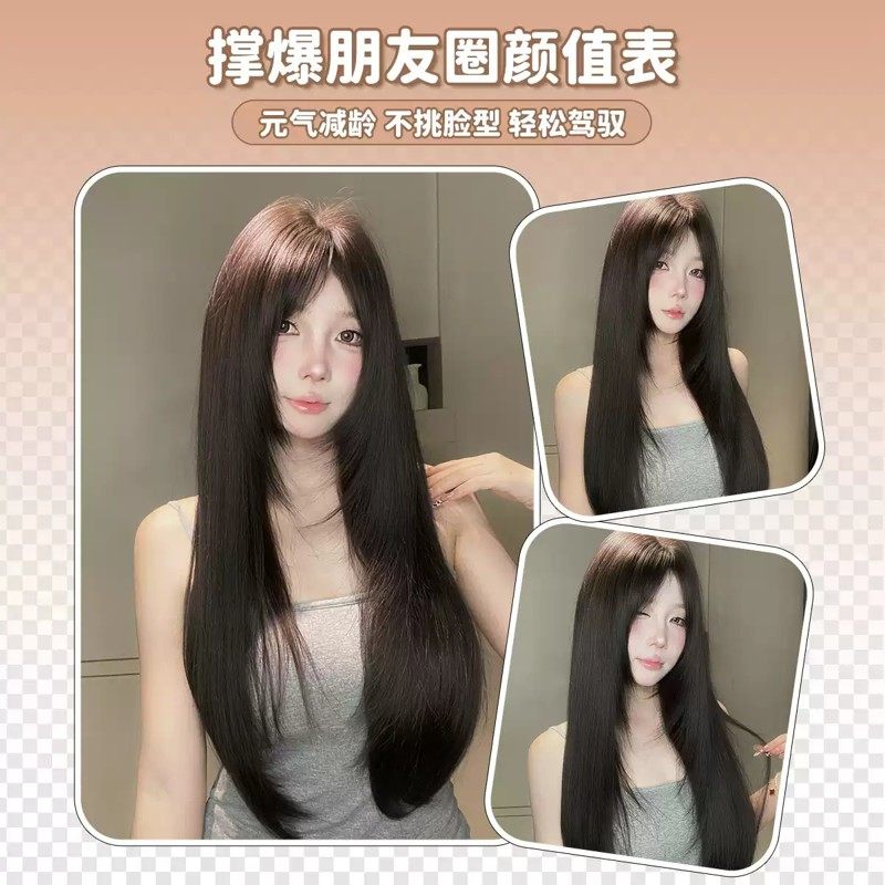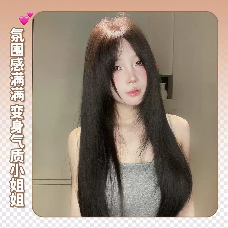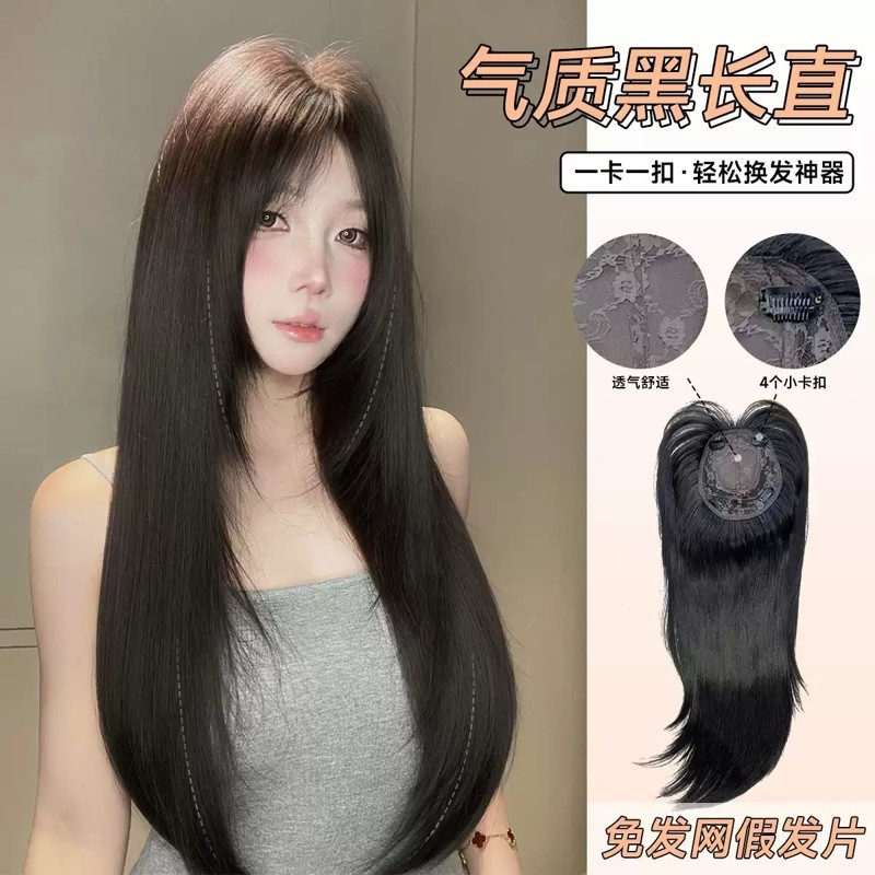 AG【暗恋】免发网版透气无痕蓬松超薄高层次黑茶长直发补发片假发