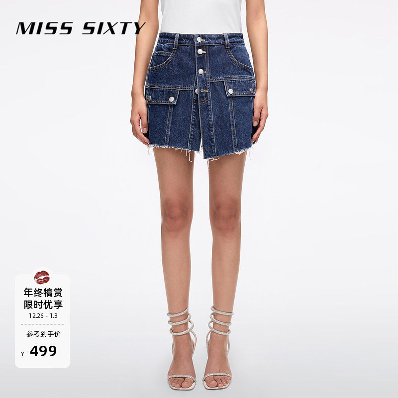 Miss Sixty2025夏季新款牛仔短裤裙裤做旧毛须边复古休闲街头风