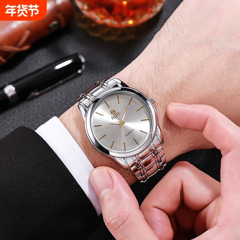 【HOT】休闲石英手表钢带石英表男女时尚情侣潮流商务大表盘学生