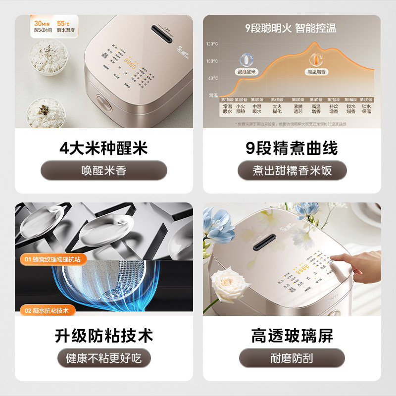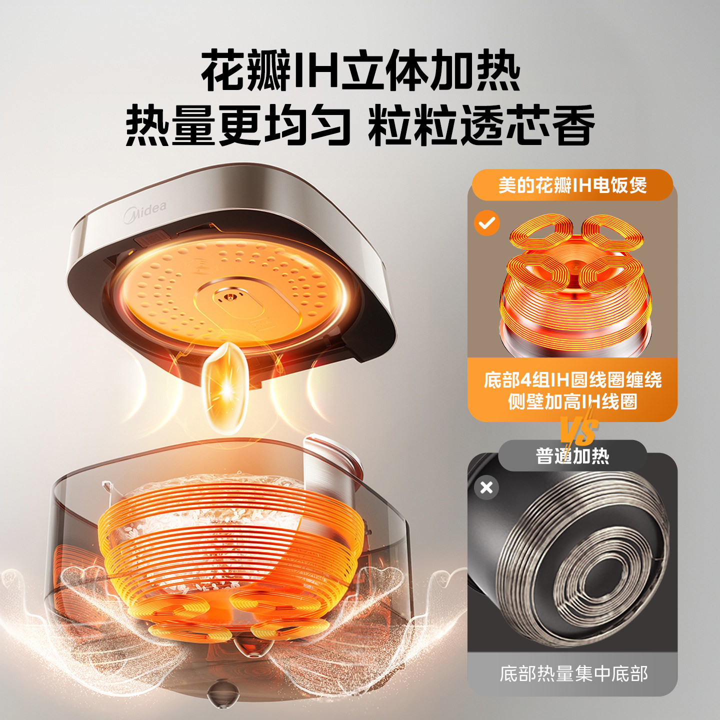 美的花瓣IH电饭煲家用4L无涂层3到4人多功能316L内胆0涂层电饭锅
