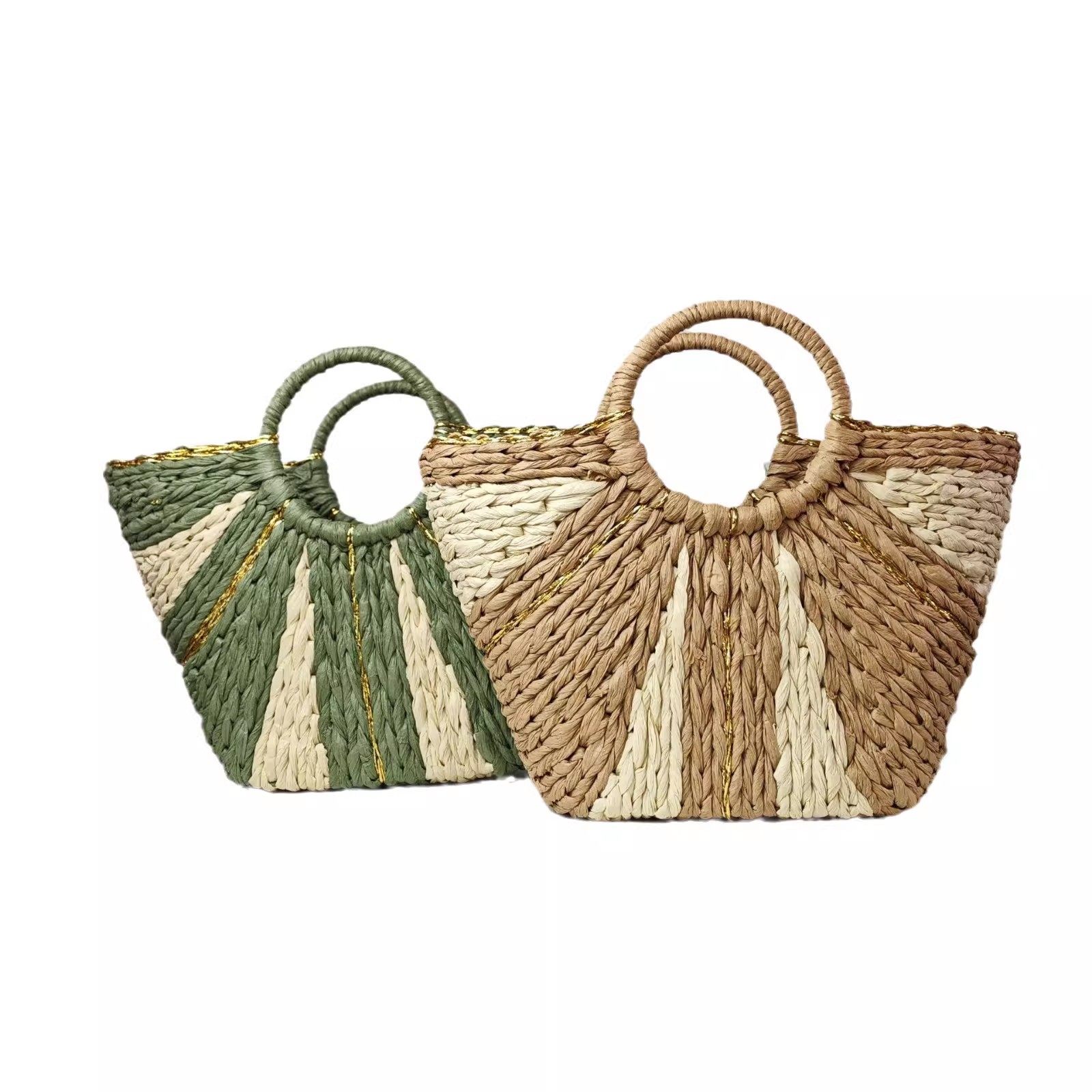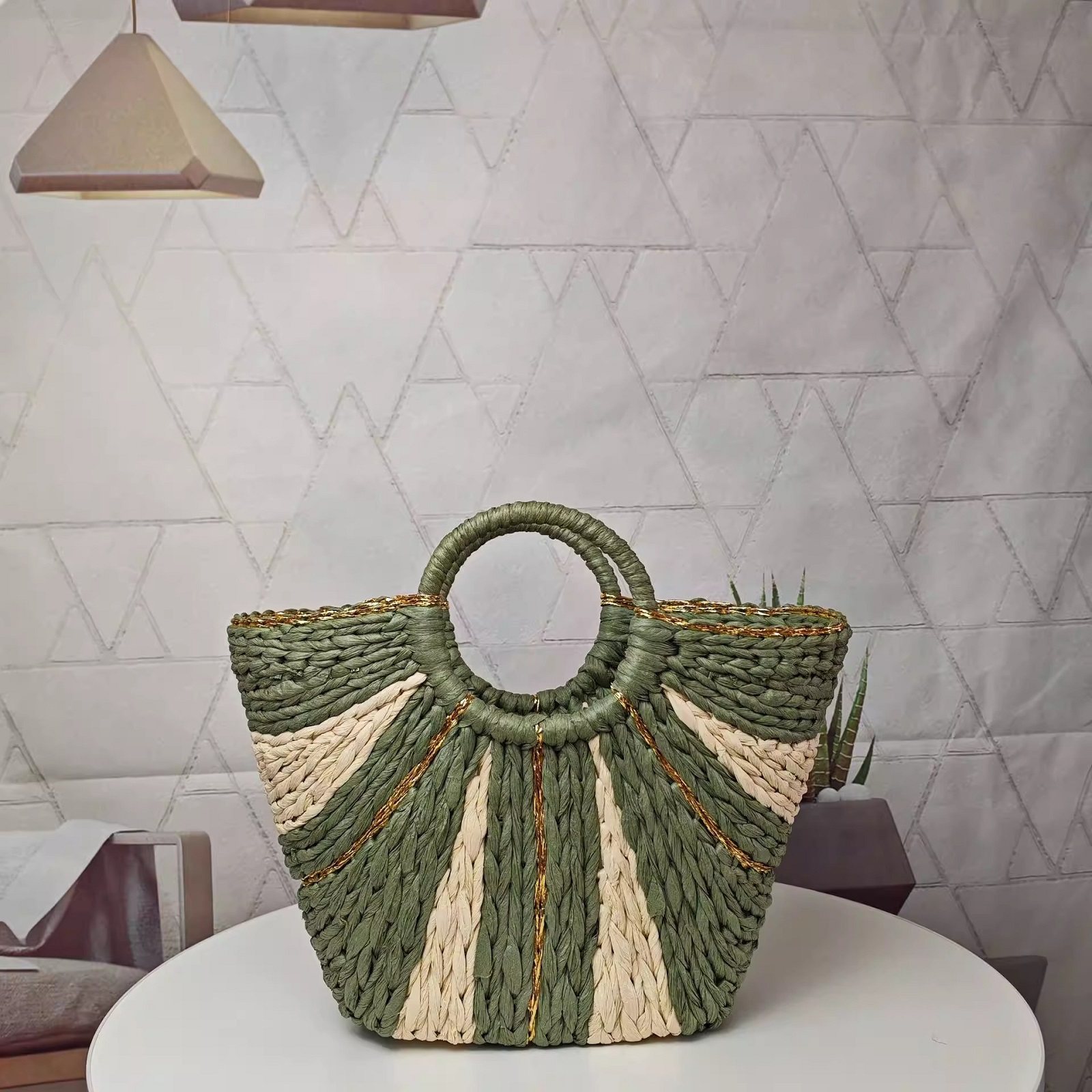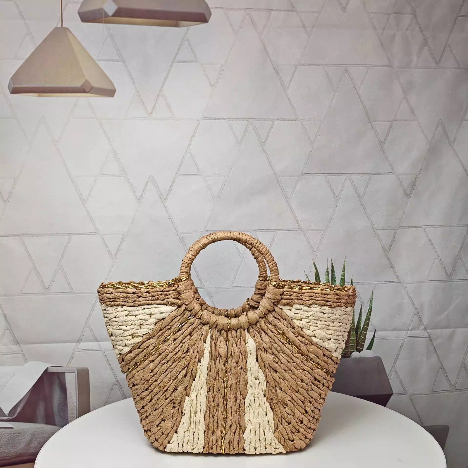 金丝手提草编包大容量托特菜篮子包度假沙滩包手拎编织包