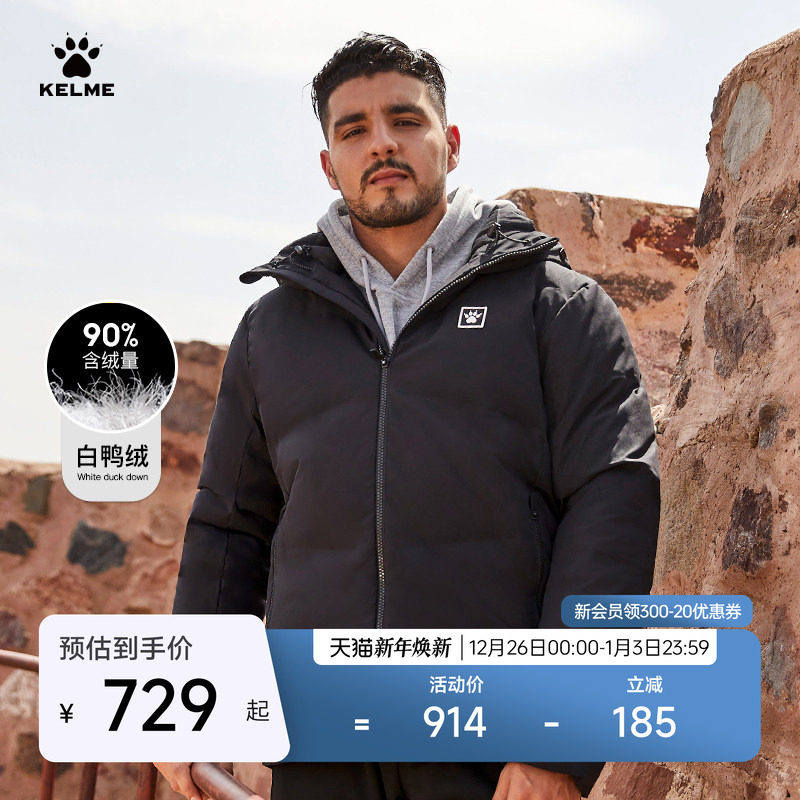 KELME卡尔美运动羽绒服短款官方旗舰足球训练白鸭绒男士加厚外套