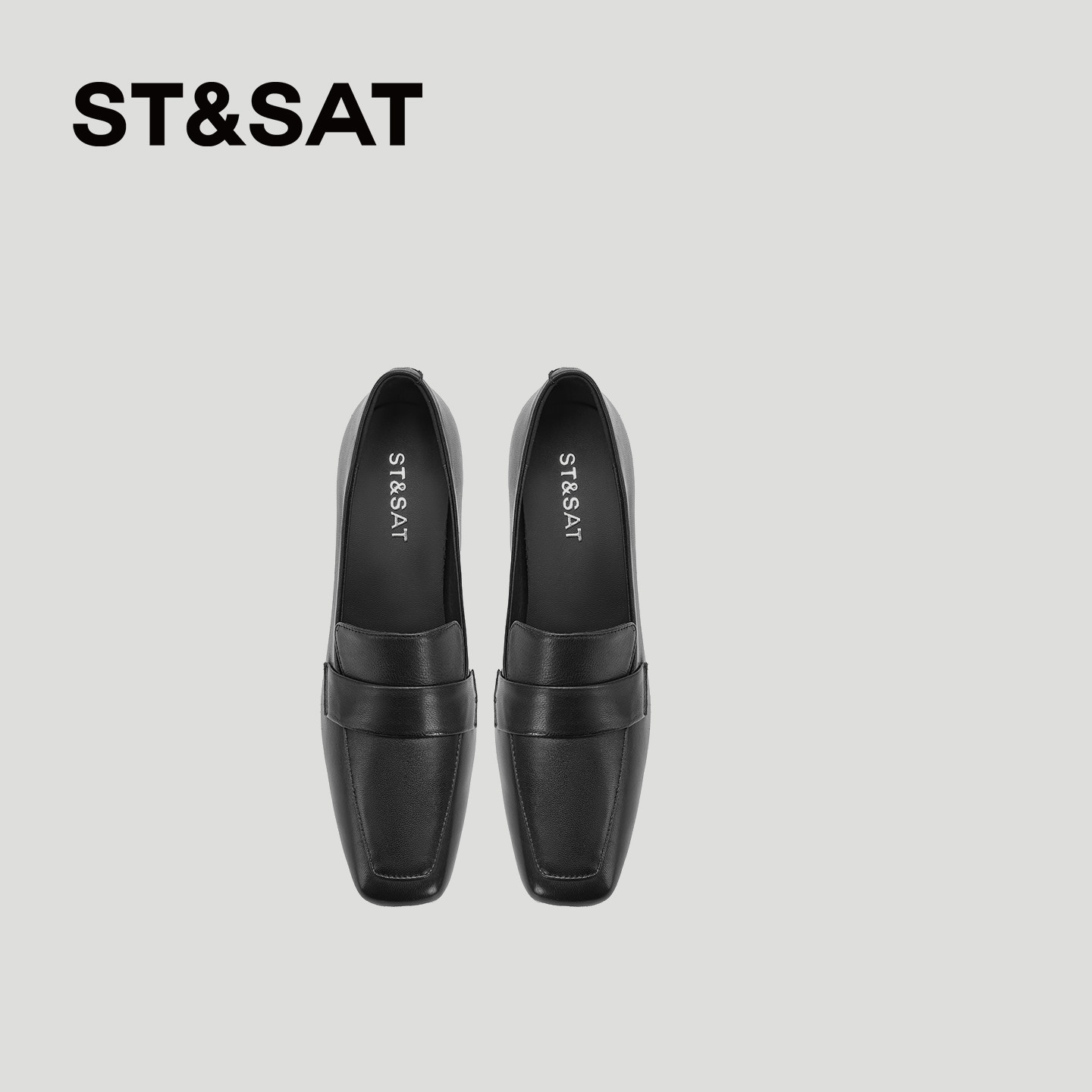 星期六真皮乐福鞋女山茶花新款秋季女鞋平底单鞋英伦风黑色小皮鞋