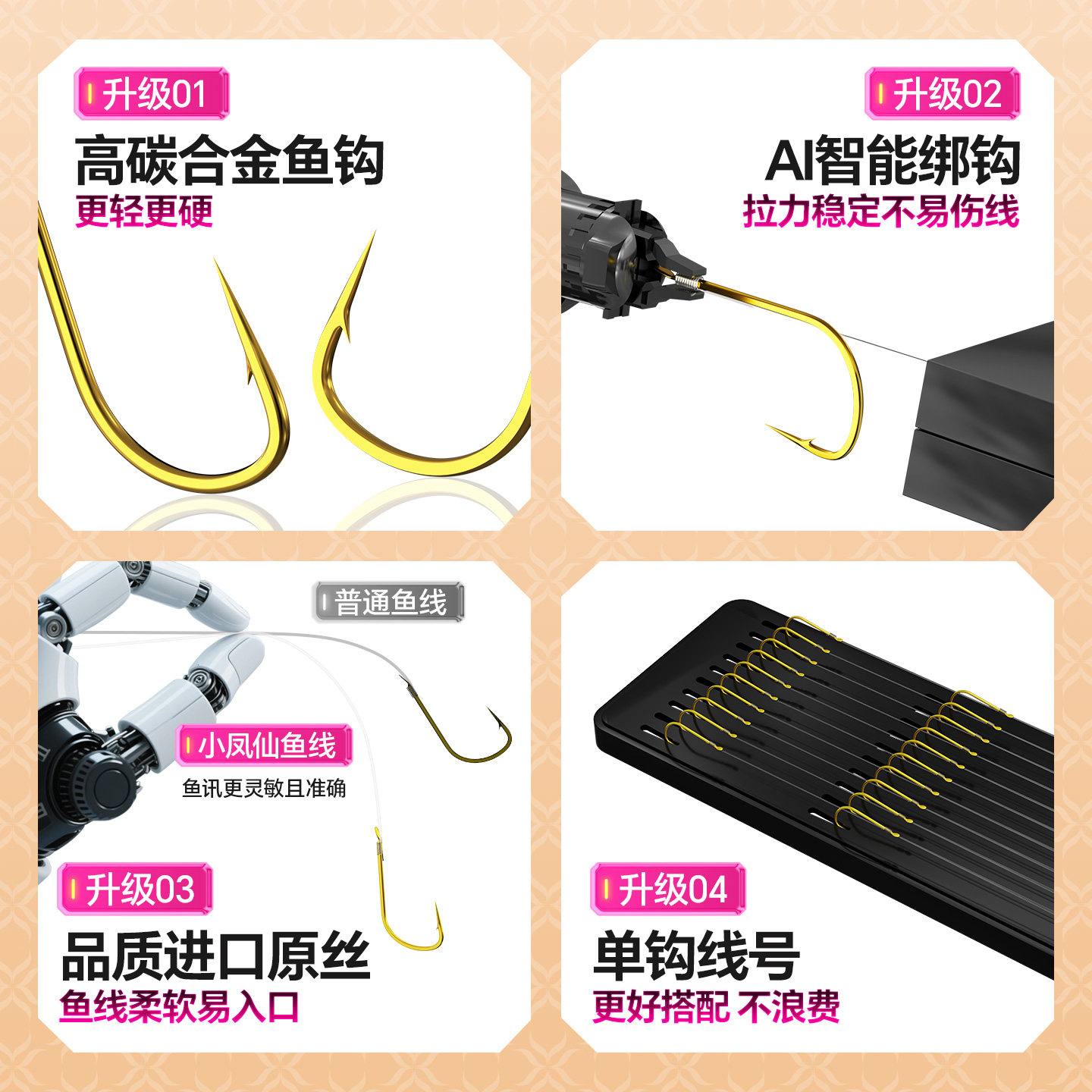 金袖鱼钩鱼线绑好鱼钩套装全套子线双钩成品组合防缠鲫鱼钩钓鱼