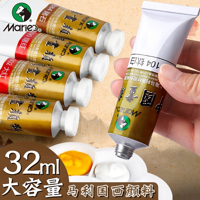 马利国画颜料单支高级正品绘画中国画专用颜色单支32ml玛丽藤黄花钛白初学者大瓶画画赭石花青三绿曙红水墨画