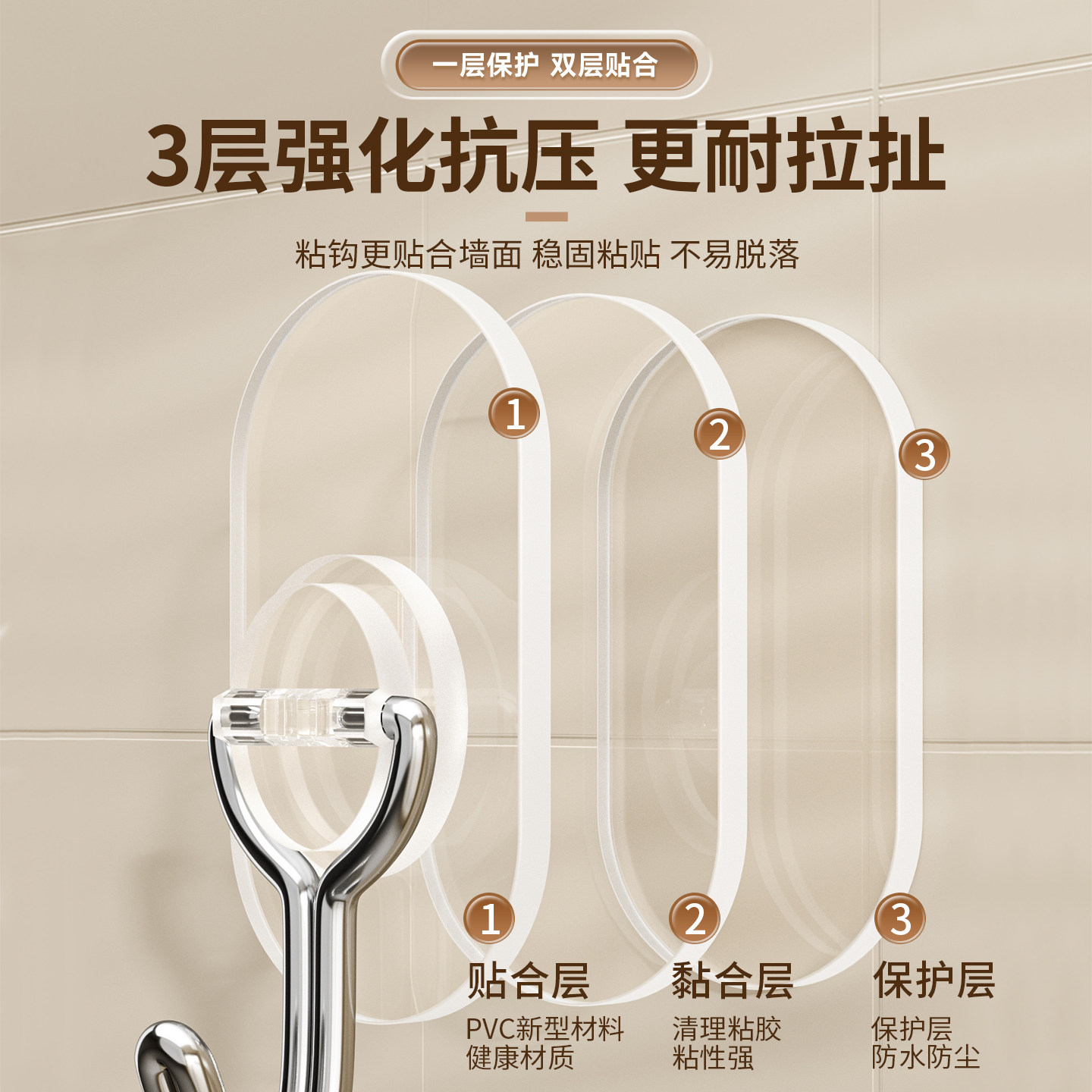 百草园厨房挂钩免打孔强力承重浴室墙壁贴墙粘钩无痕粘贴钩子吊钩