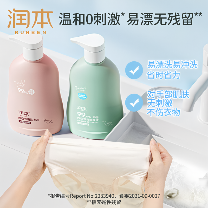 润本儿童内衣裤专用洗衣液孕妇洗衣液长效抑菌深层去渍母婴适用