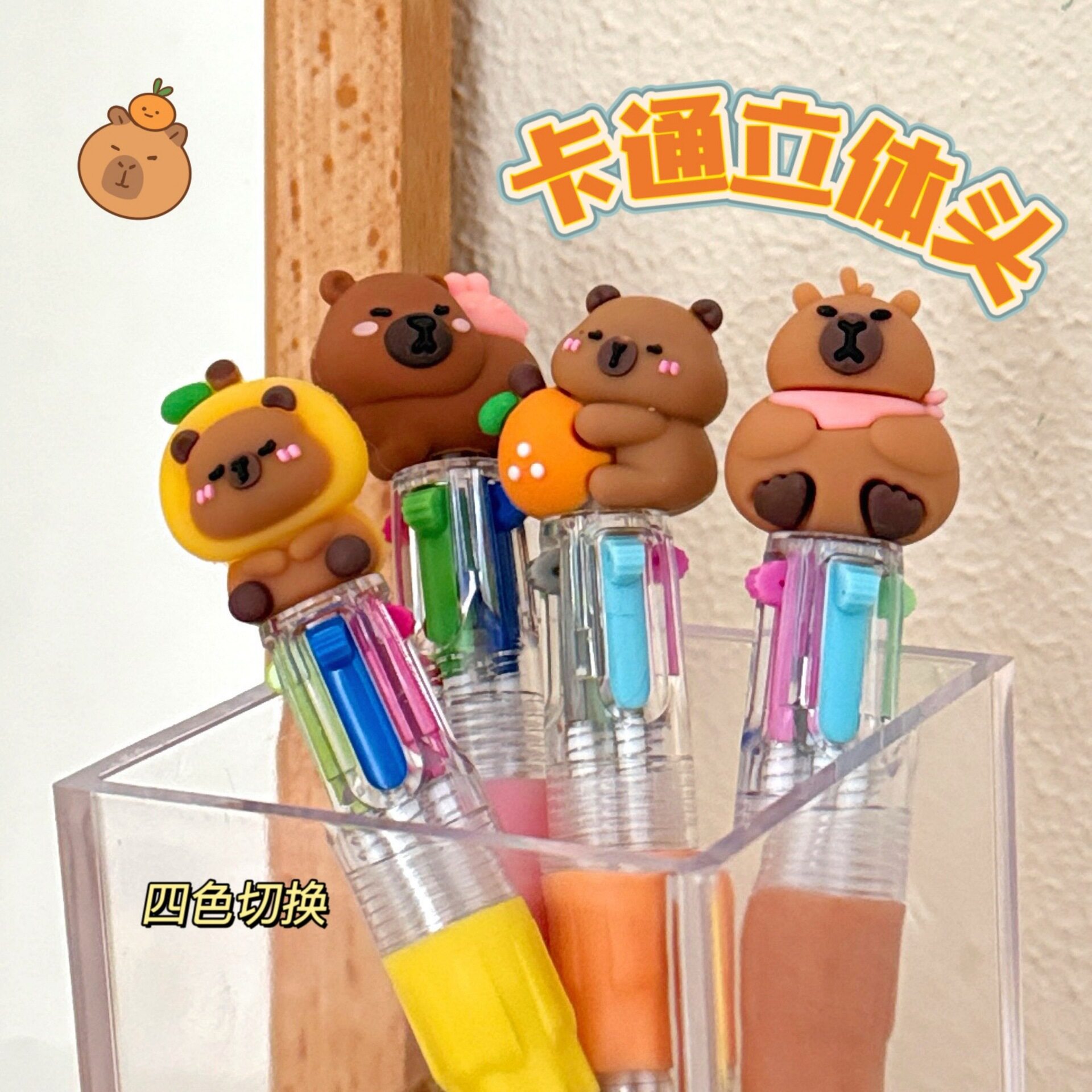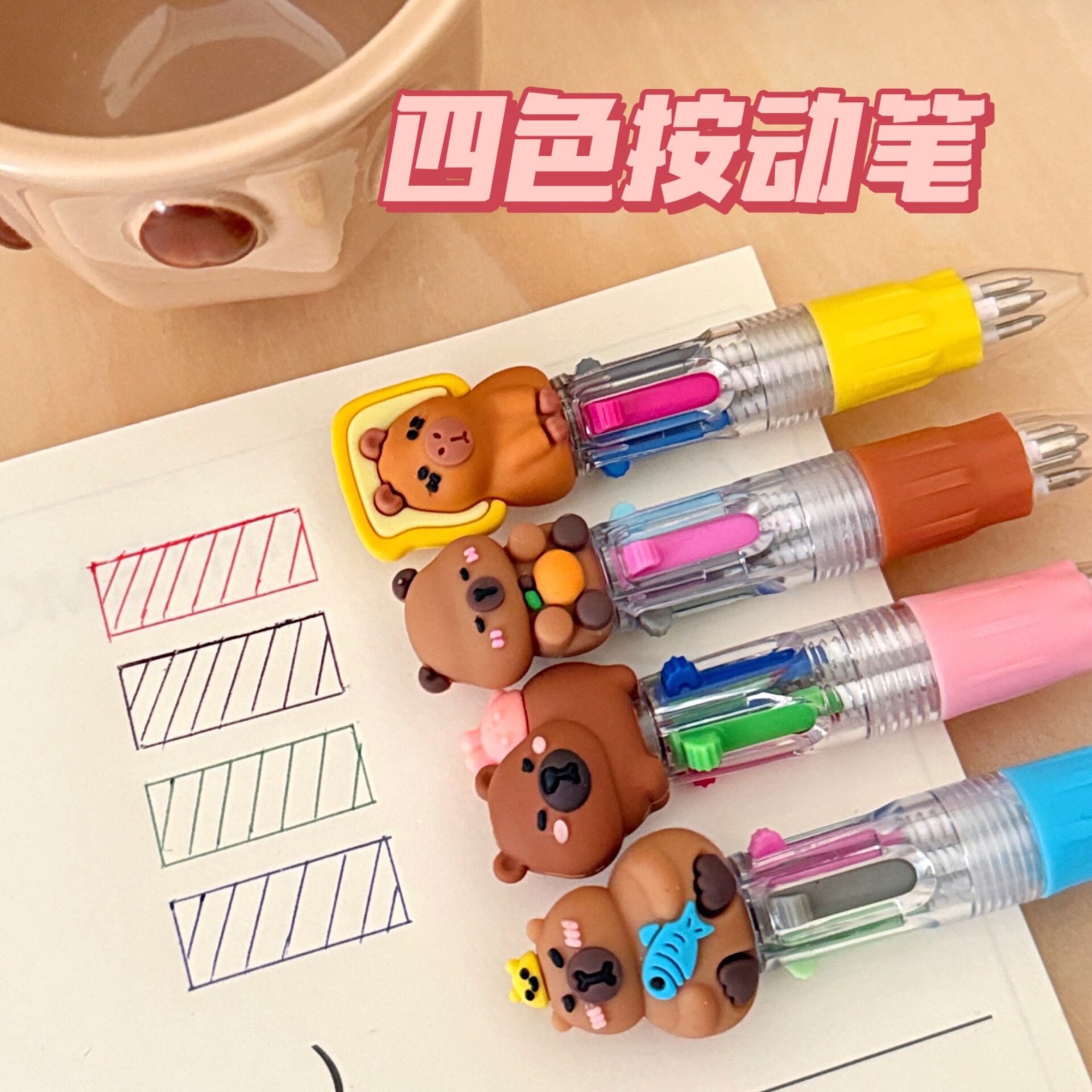 新款可爱卡通水豚四色按动笔学生多功能做笔记专用圆珠笔礼物批发