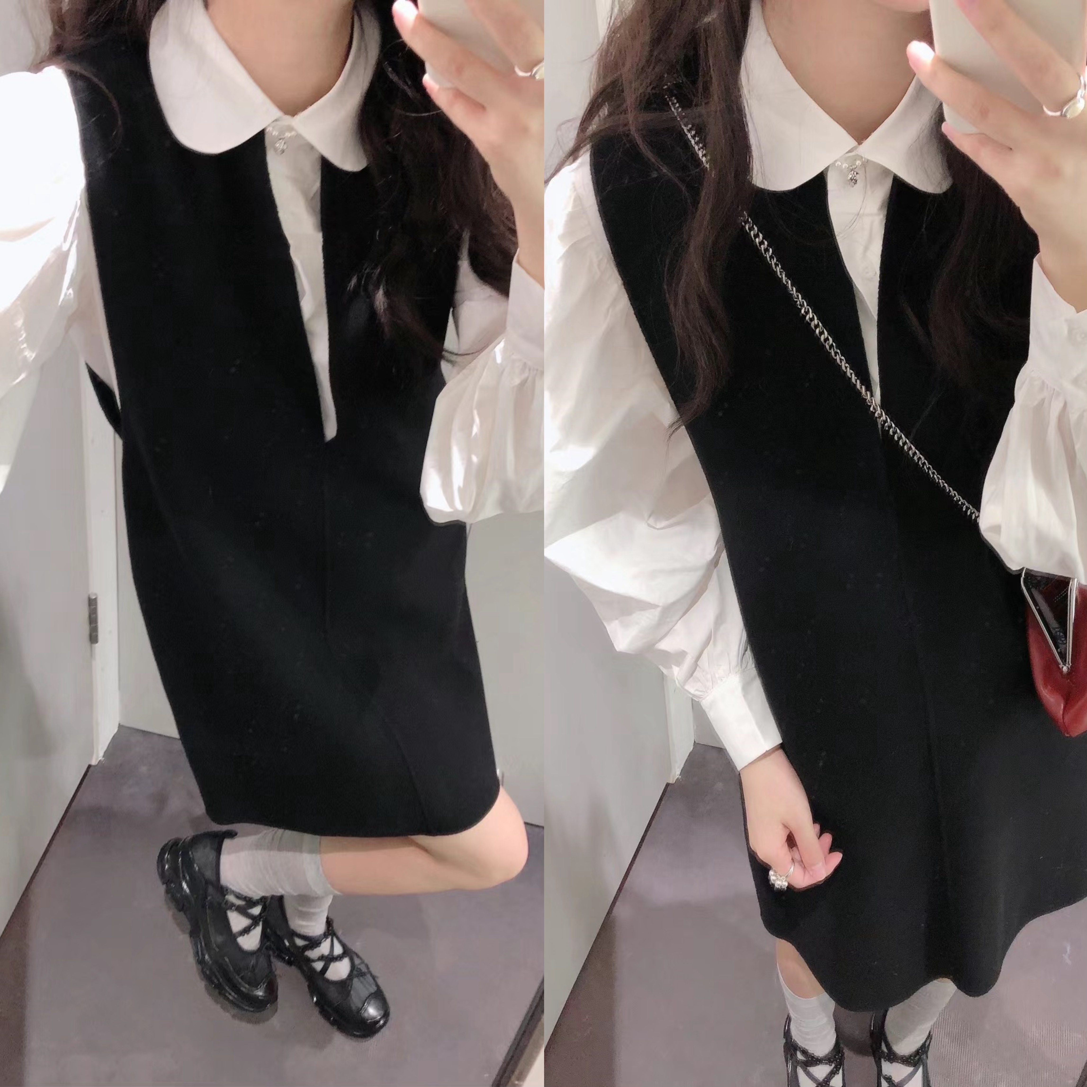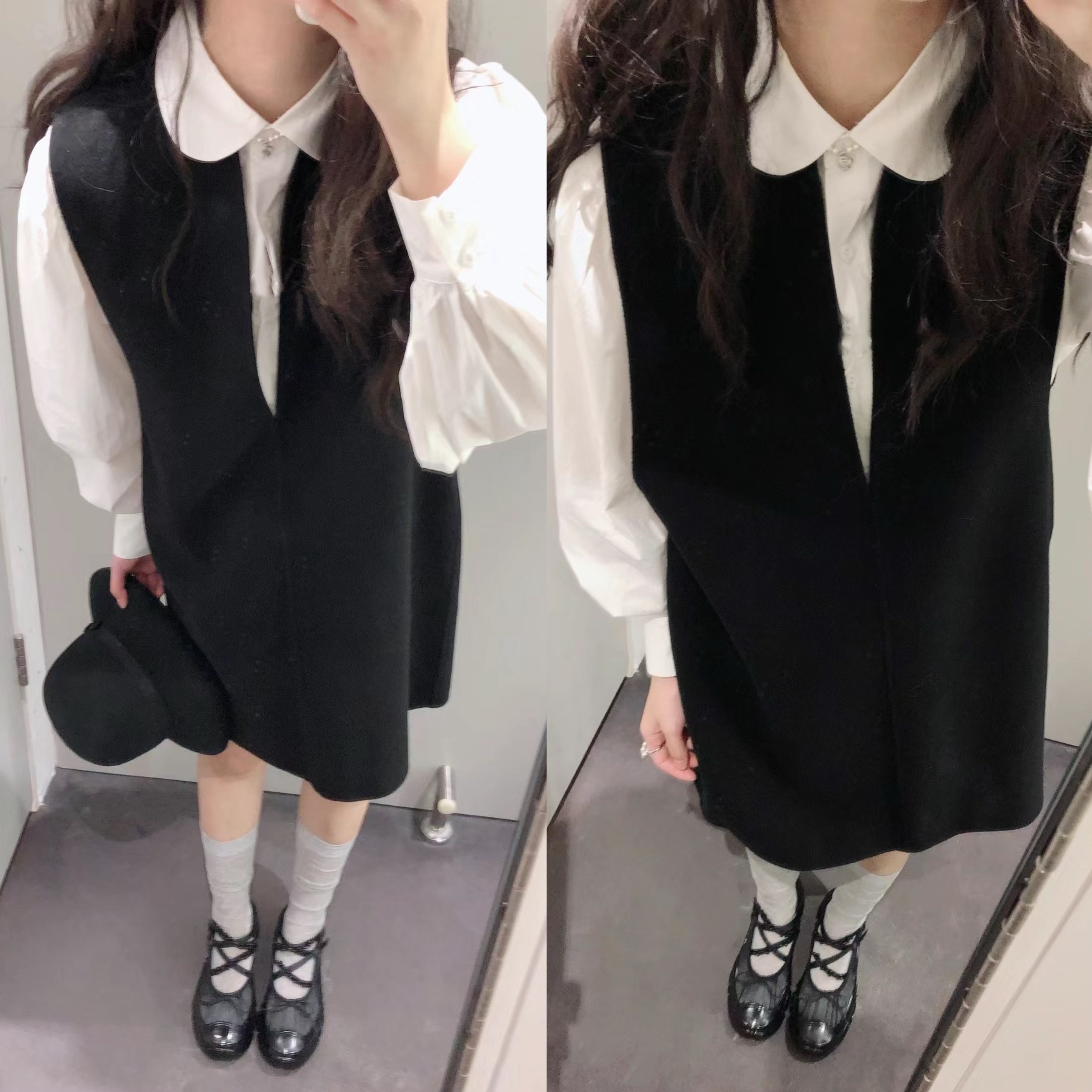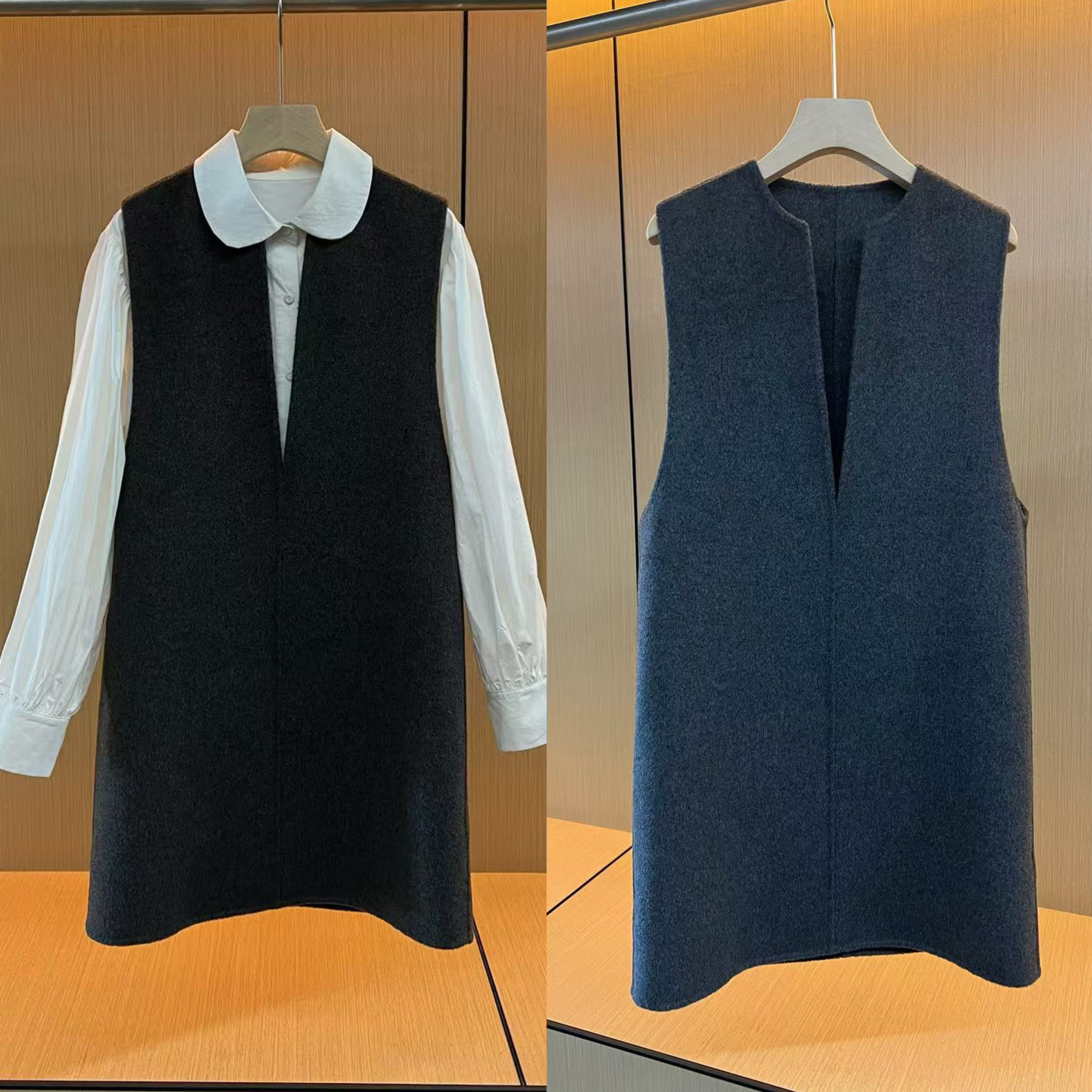C家2025年秋冬新款女装极简风宽松显瘦无袖纯绵羊毛背心A字连衣裙