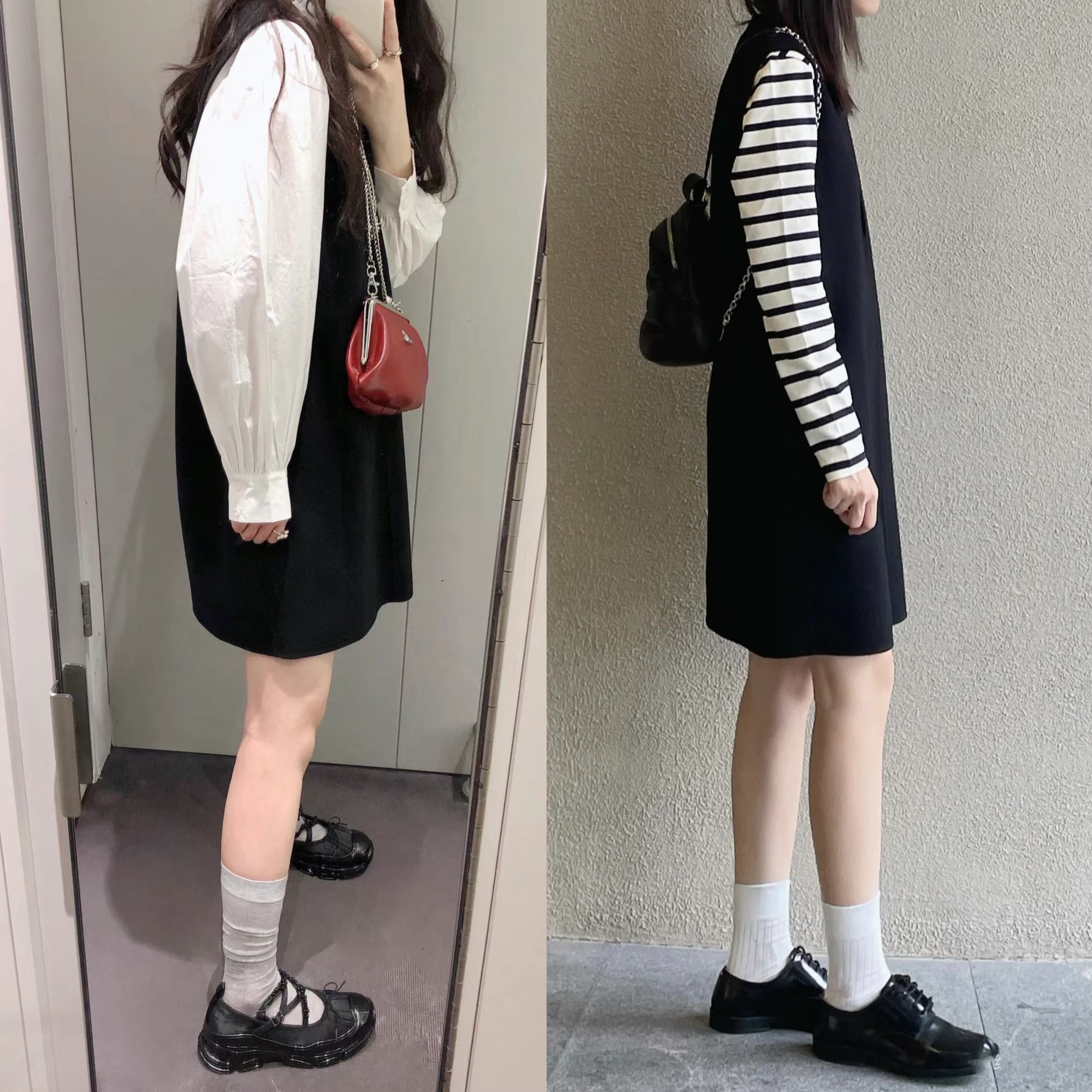 【裙子清仓79元起】半练带胸垫连衣裙秋季打底背心裙黑白吊带裙子