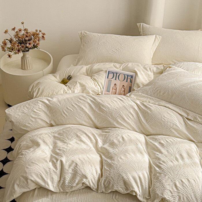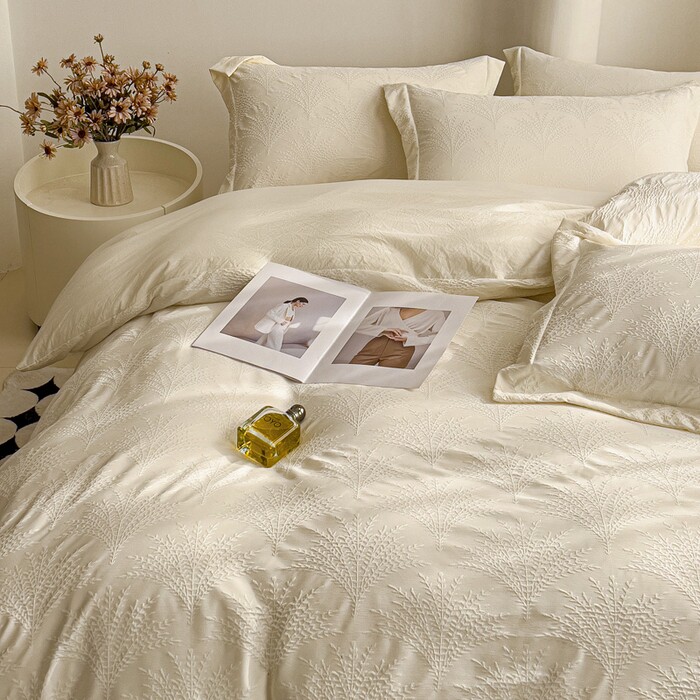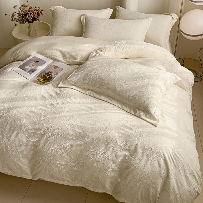 A类母婴级轻奢双层纱提花四件套100床单被套床笠款床上用品三件套