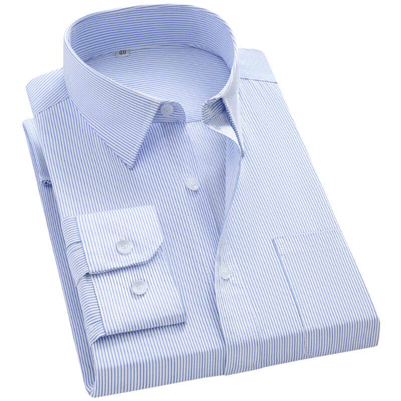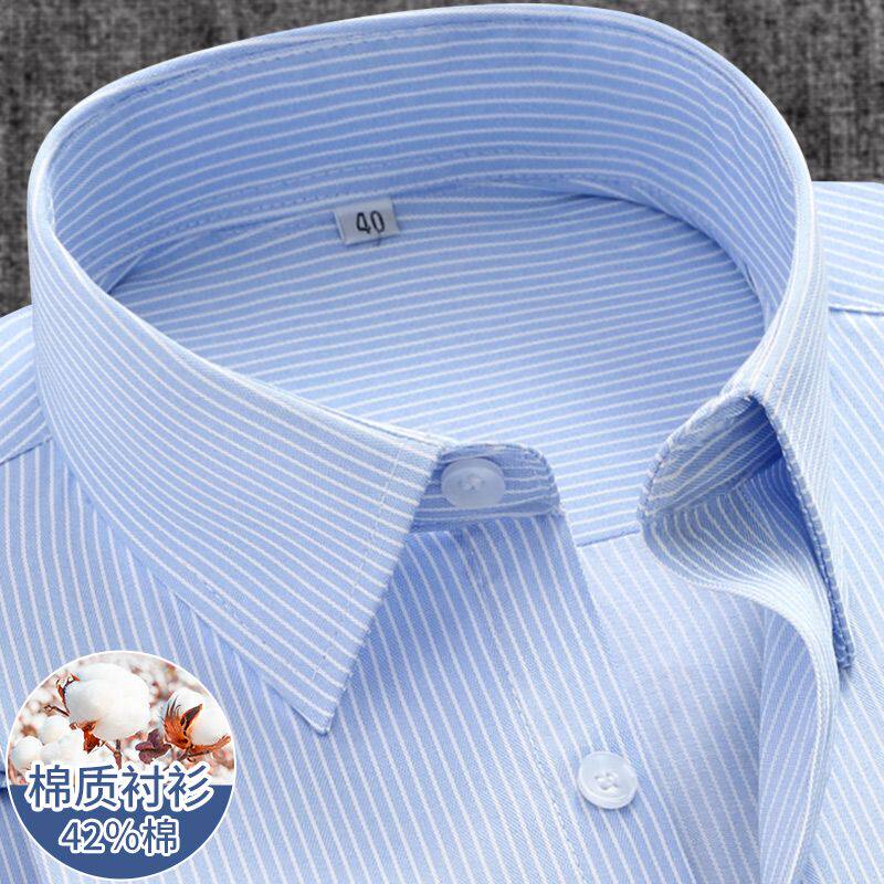 蓝条纹衬衫男长袖职业装白条纹衬衣男商务工装内搭格子白色蓝色