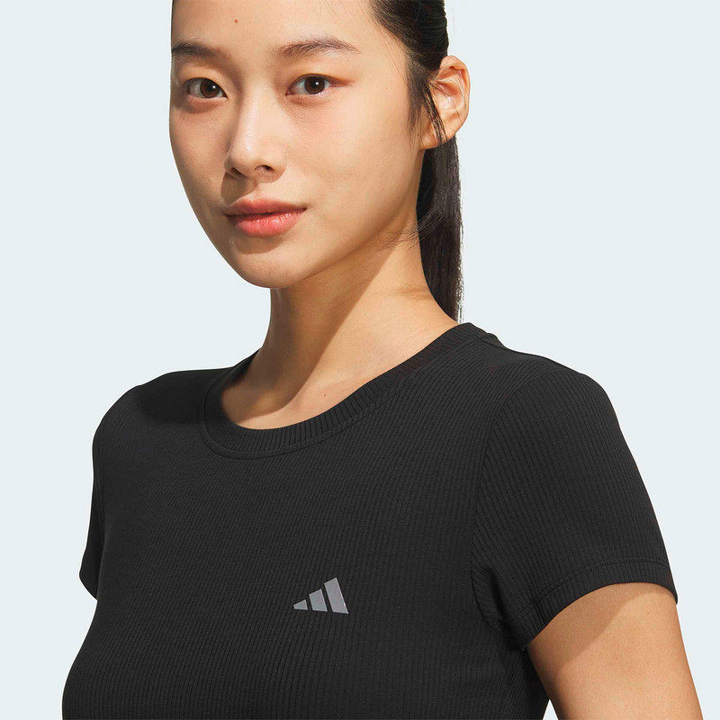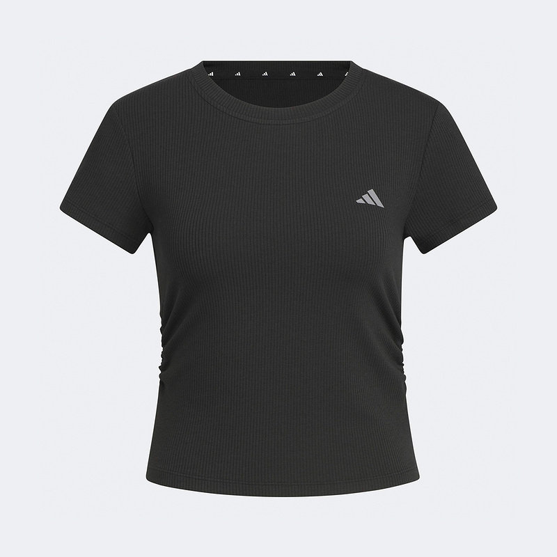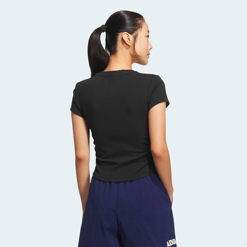 adidas阿迪达斯修身黑色褶皱收腰半袖2026夏女短款短袖T恤 KH2653