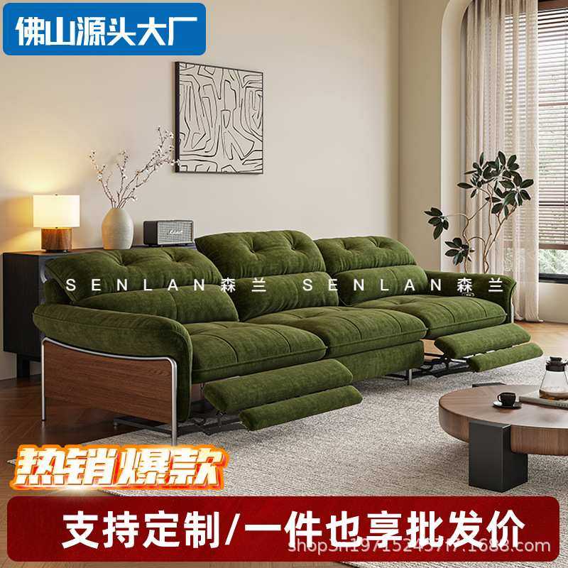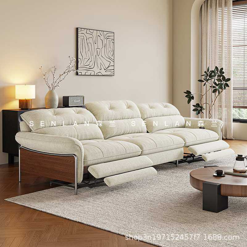 意式极简电动多功能雪尼尔绒布艺沙发客厅直排小户型中古风沙发床