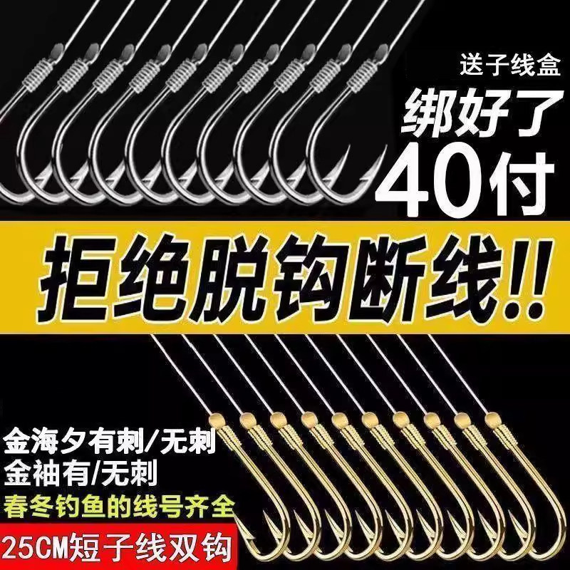 鱼钩绑好短子线双钩成品套装钓鱼袖钩金海夕金袖渔具野钓鲫鱼钩
