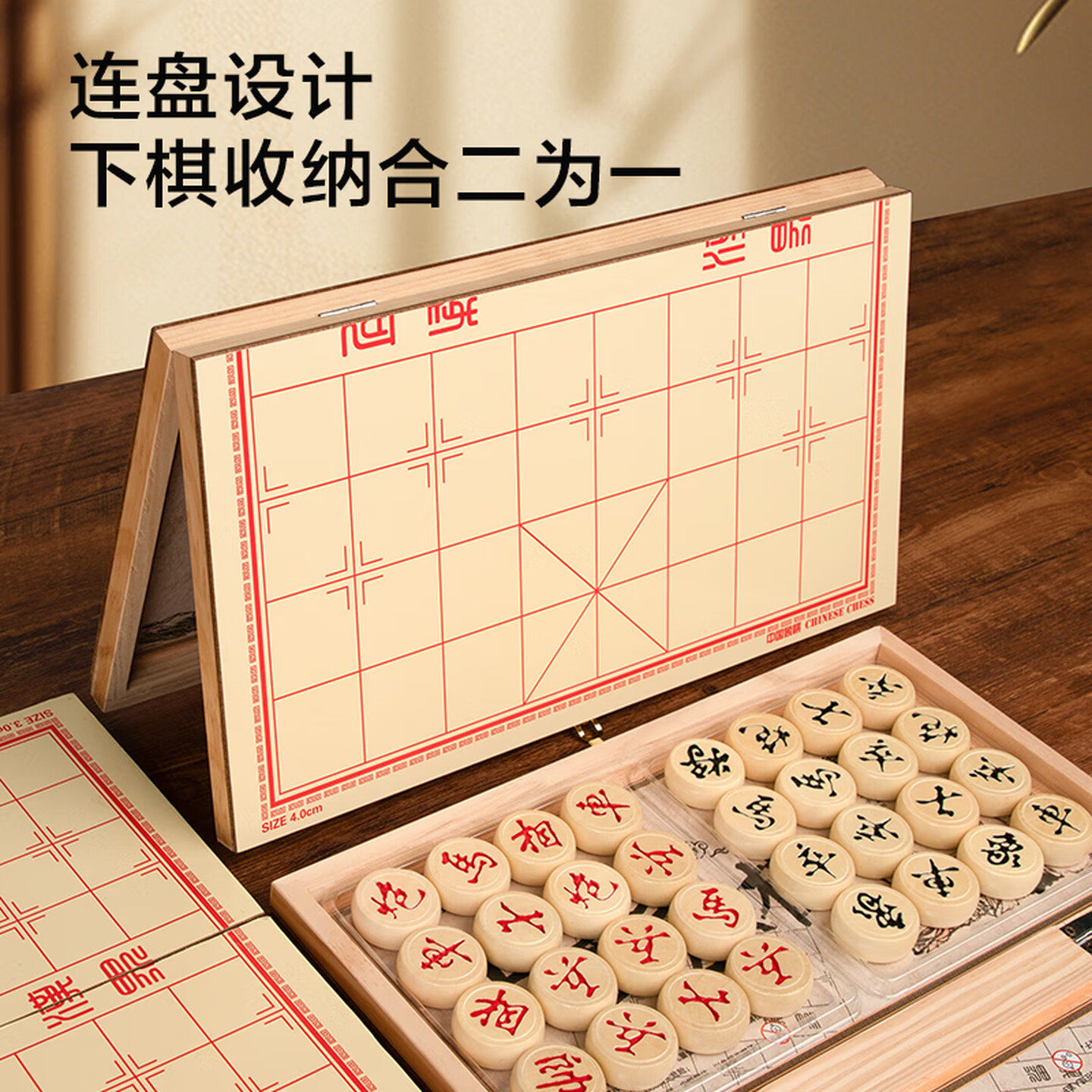实木折叠象棋大号带木制棋盘小学生专用儿童实木棋子便携式成人