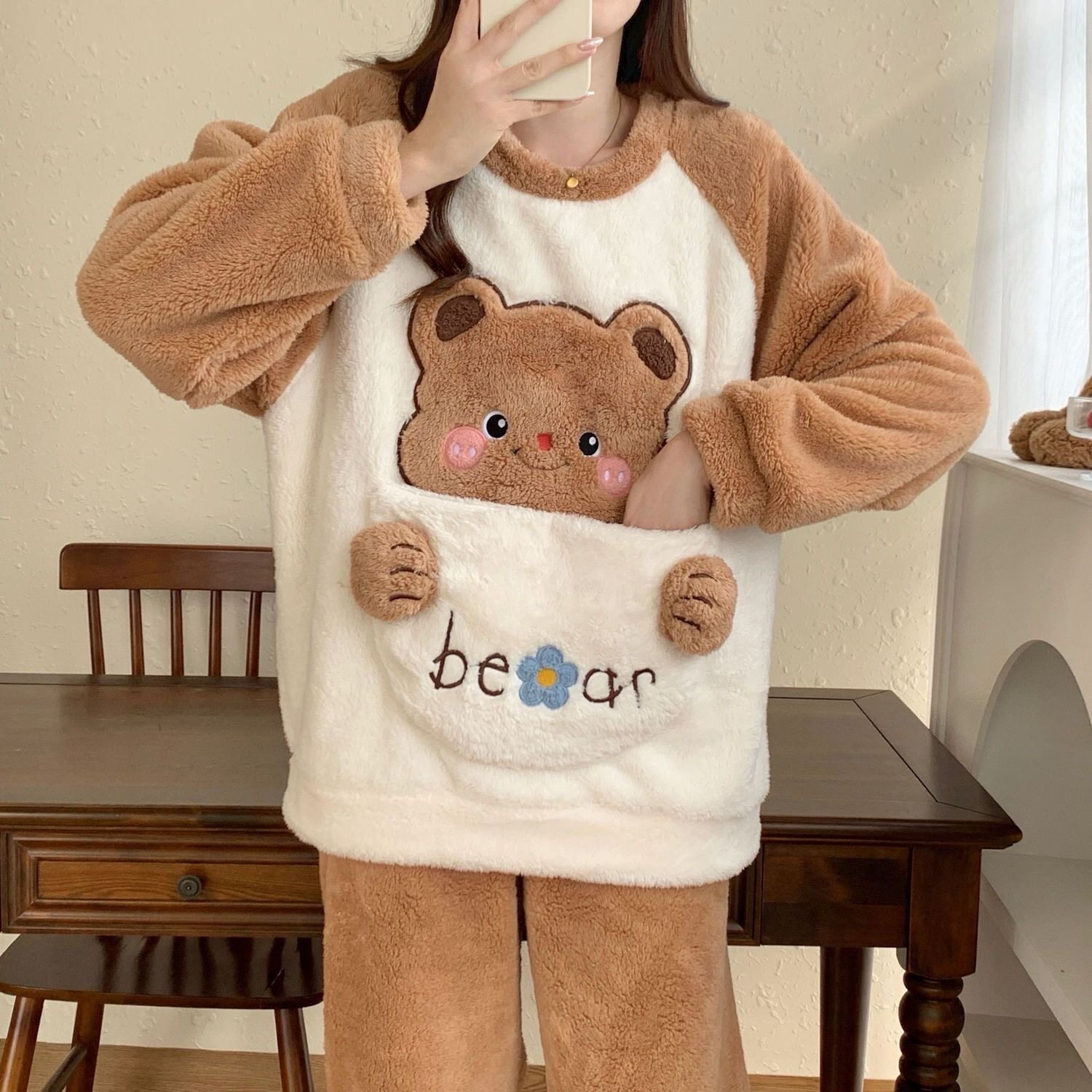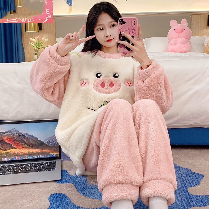 2025年冬款珊瑚绒睡衣女秋冬季加厚法兰绒加绒套装家居服春秋新款