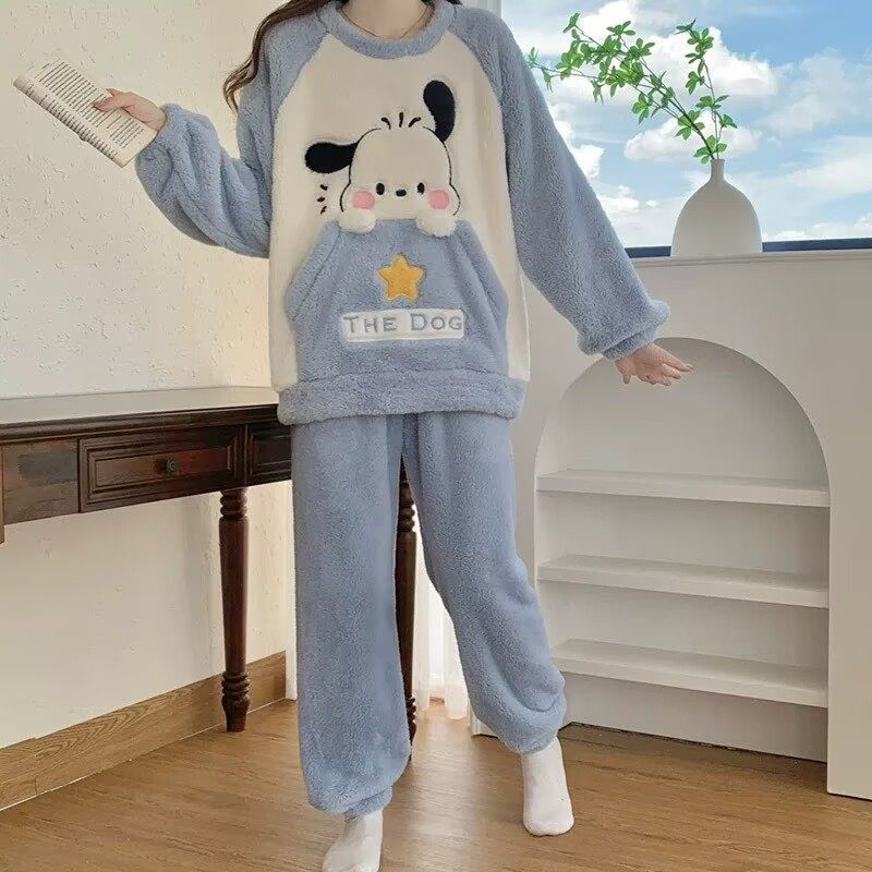 小狗睡衣女冬季珊瑚绒加厚加绒法兰绒家居服套装2025新款秋冬天